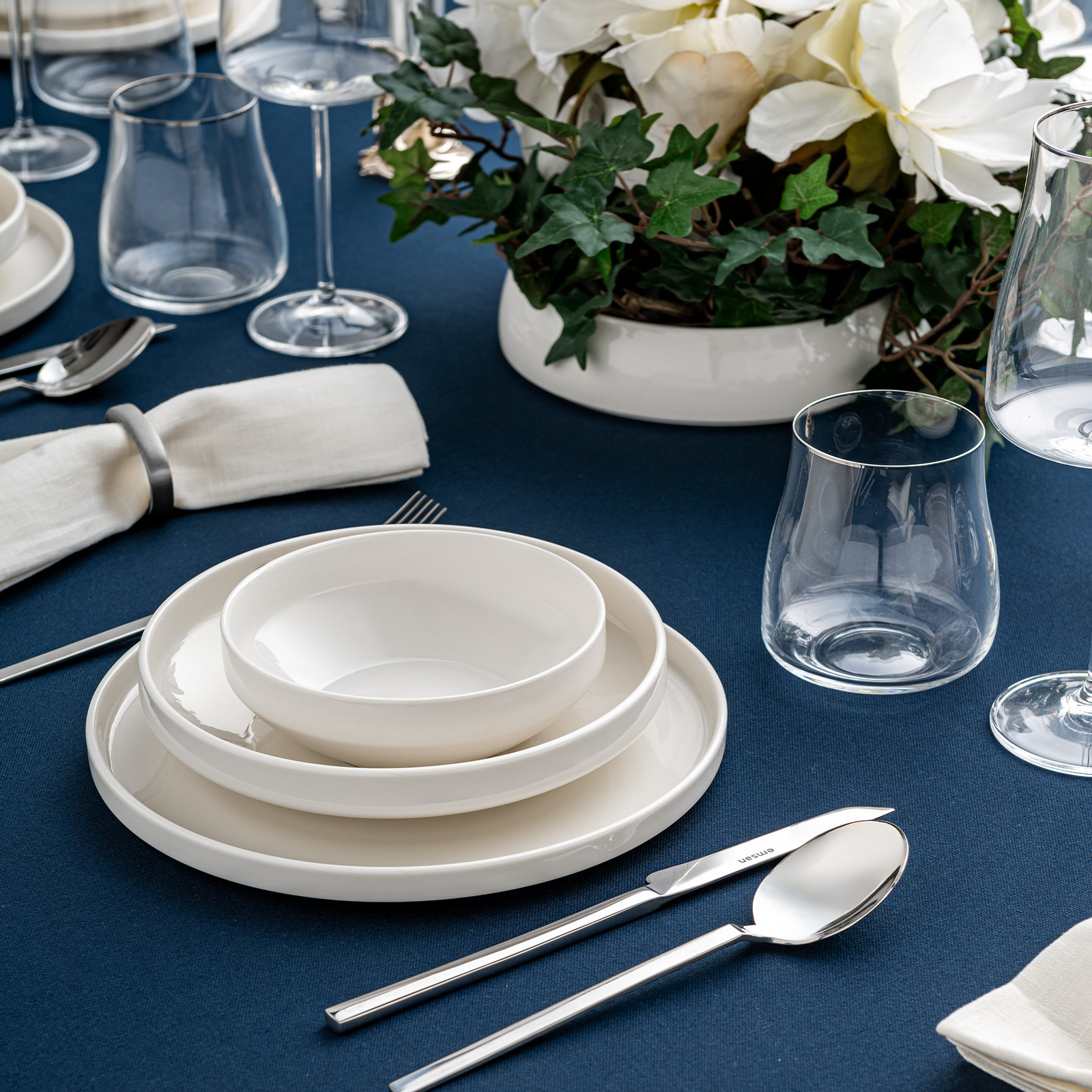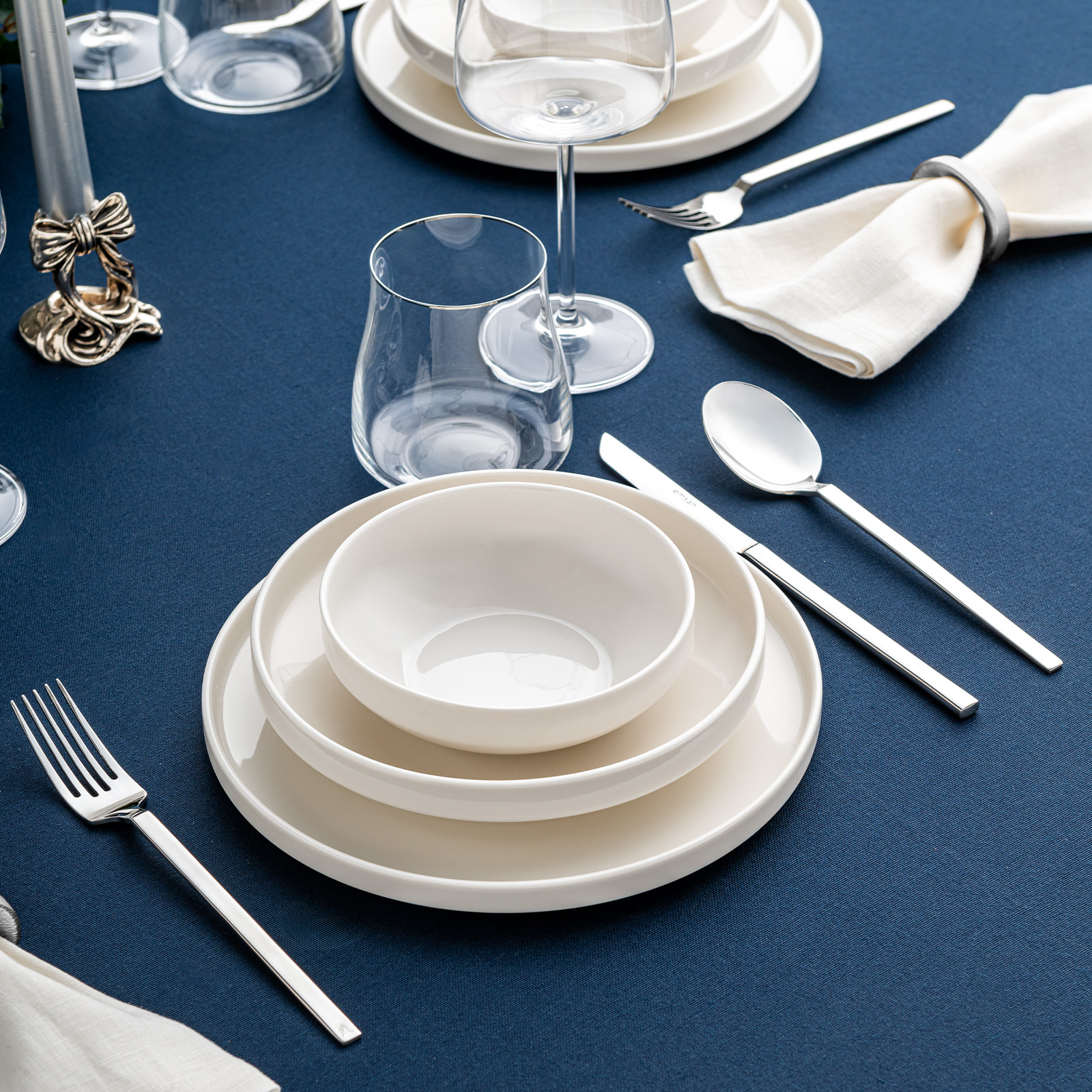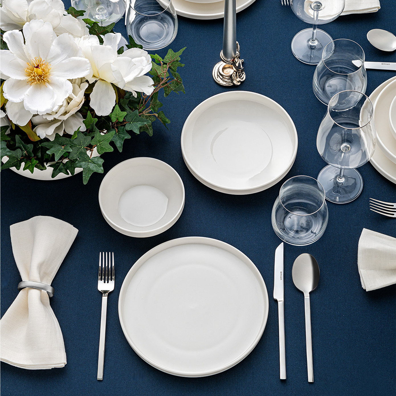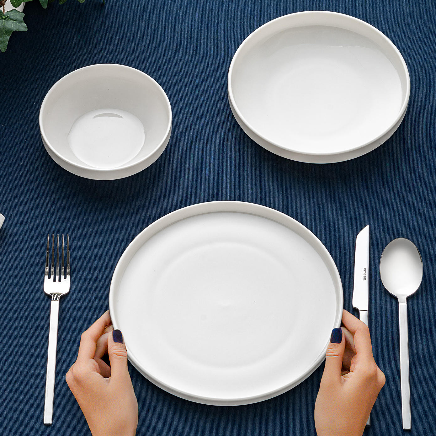EMSAN Alfa Porselen 18 Parça 6 Kişilik Yemek Takımı Beyaz