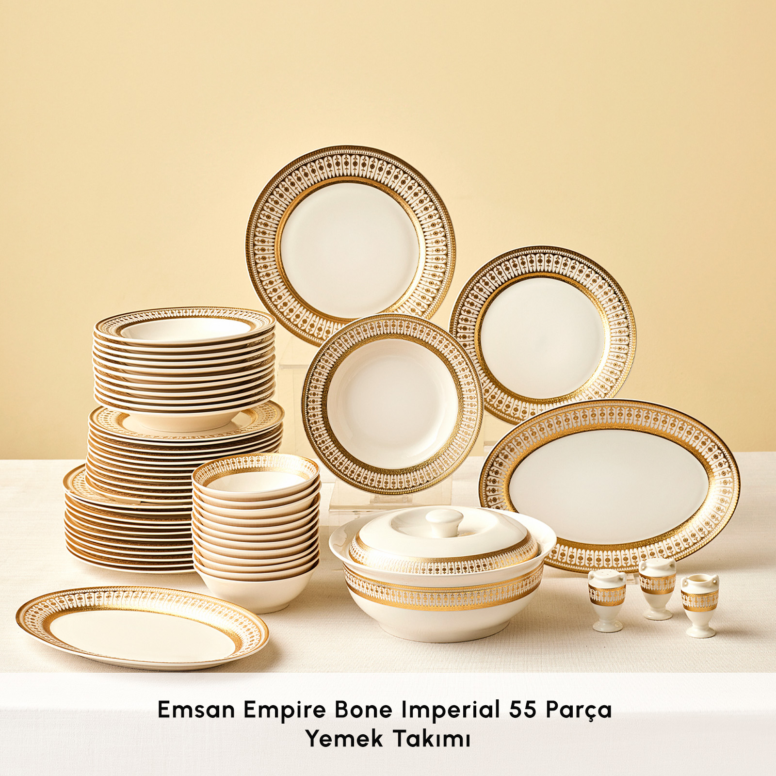 Emsan Empire Bone Imperial 55 Parça 12 Kişilik Yemek Takımı Gold