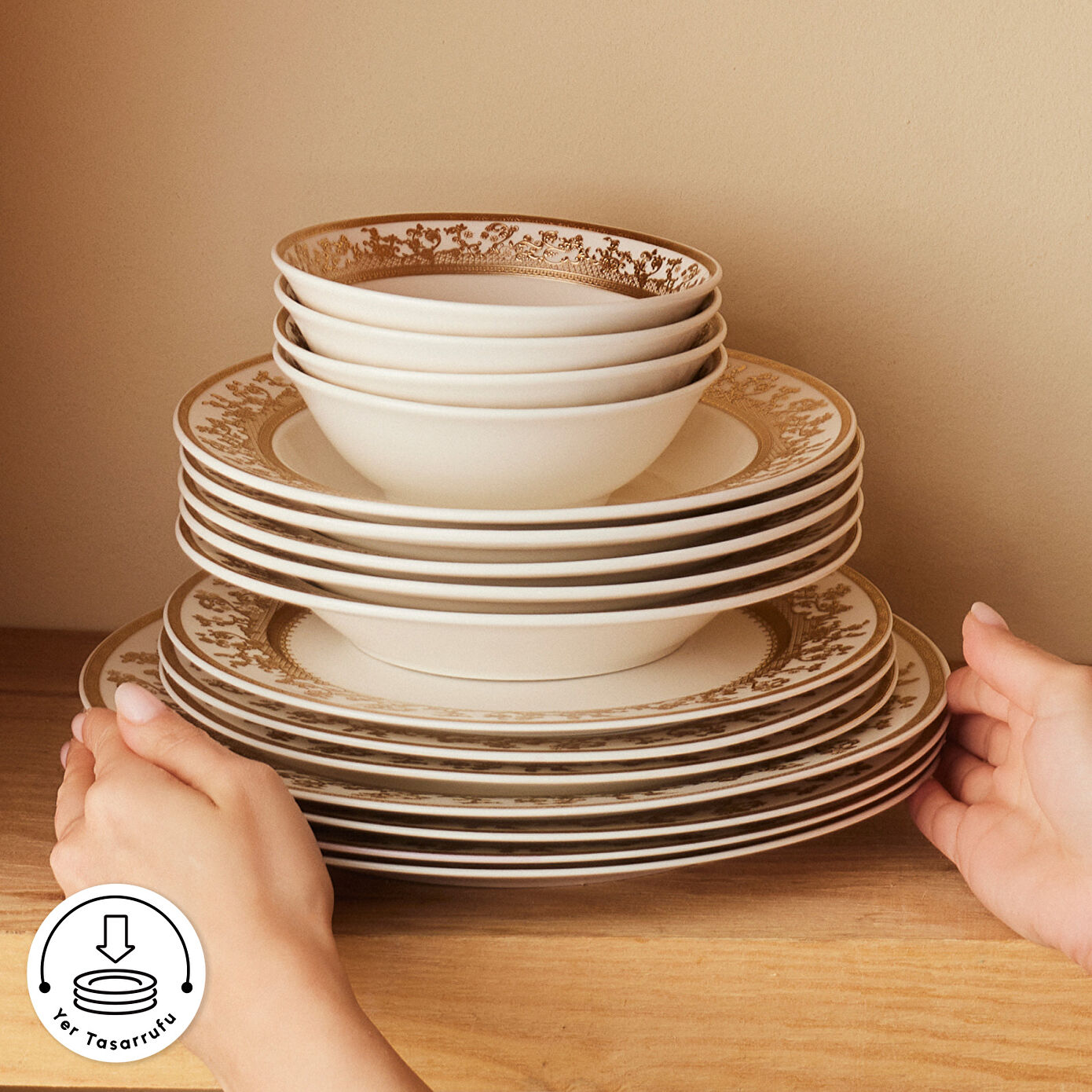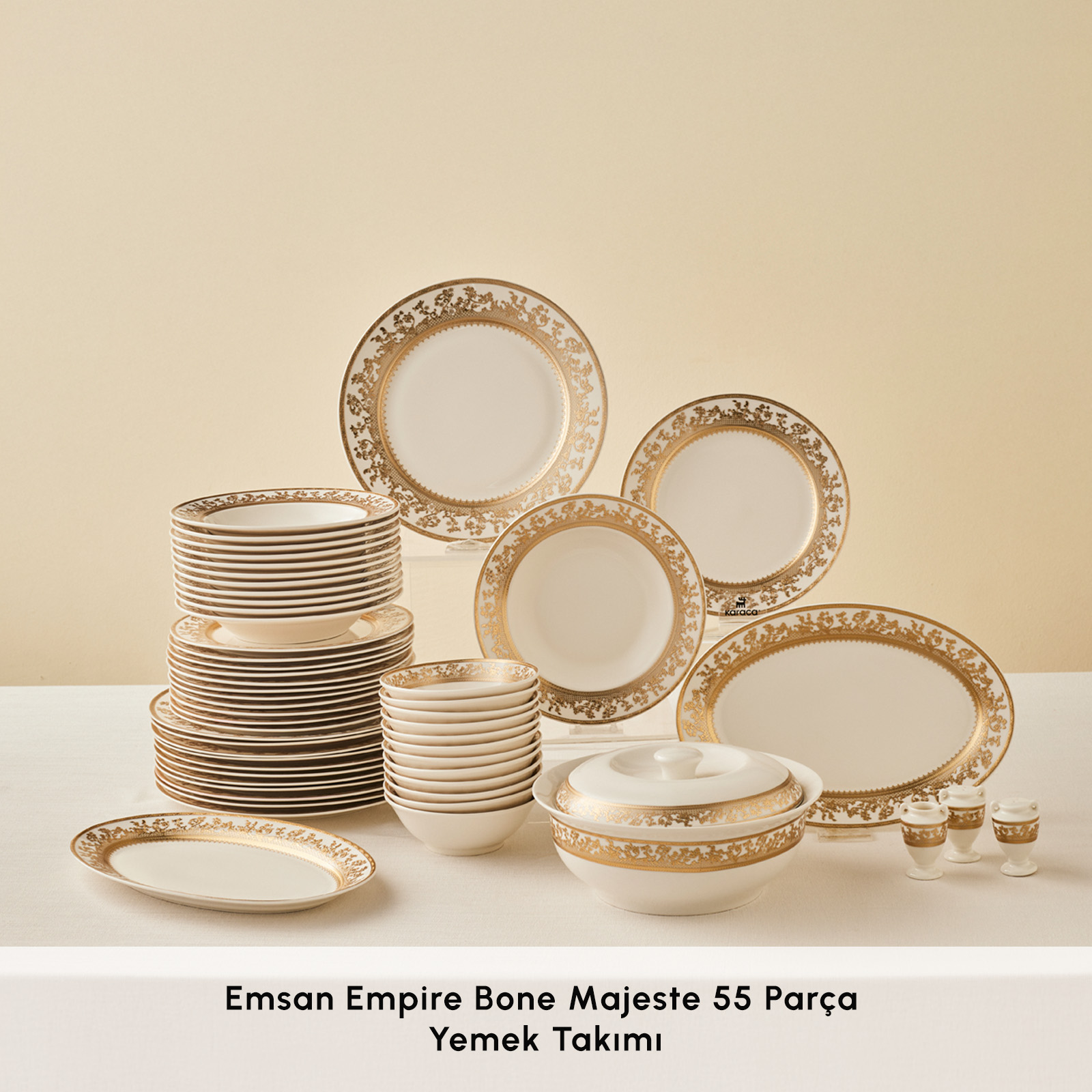 Emsan Empire Bone Majeste 55 Parça 12 Kişilik Yemek Takımı Gold