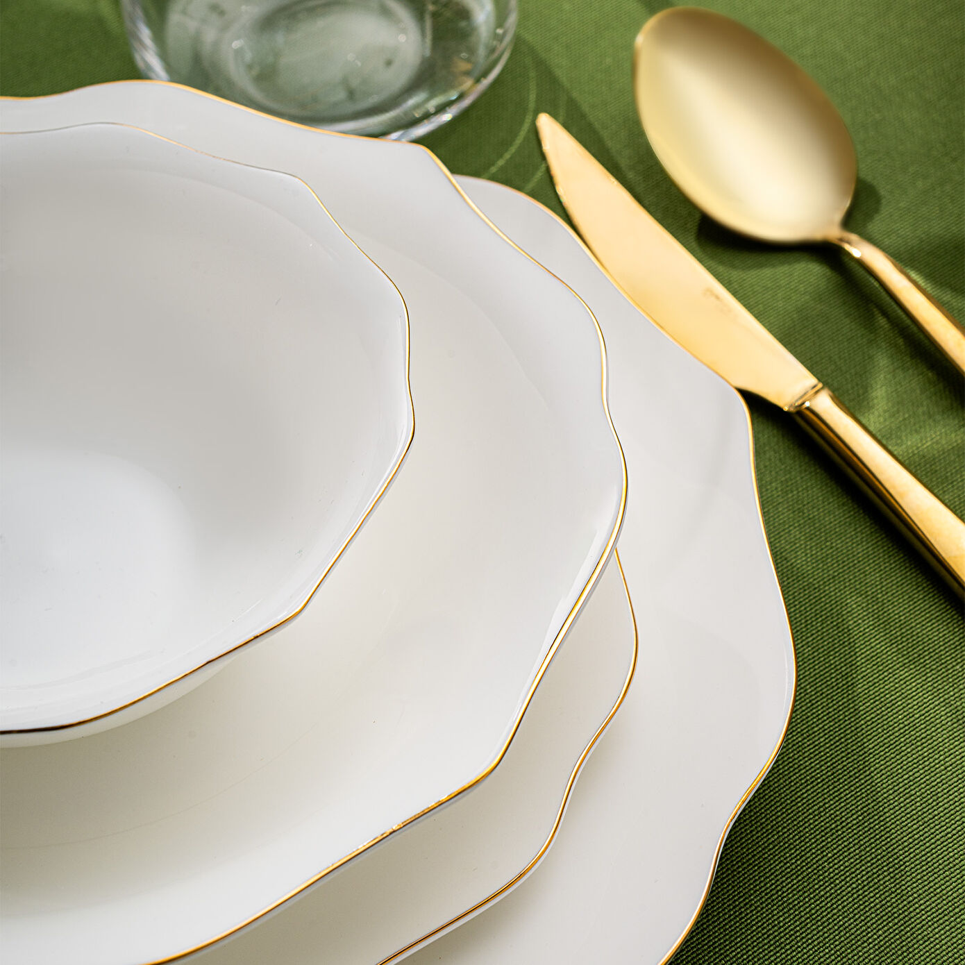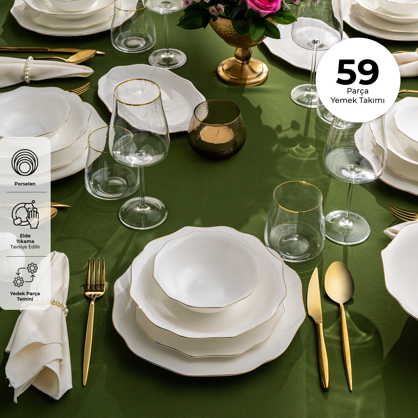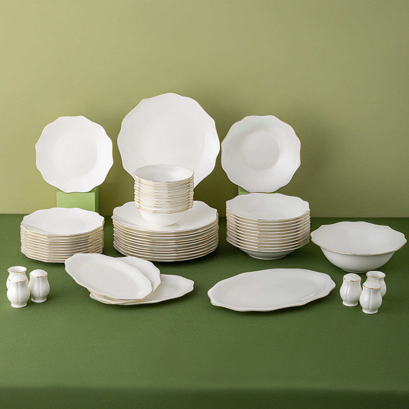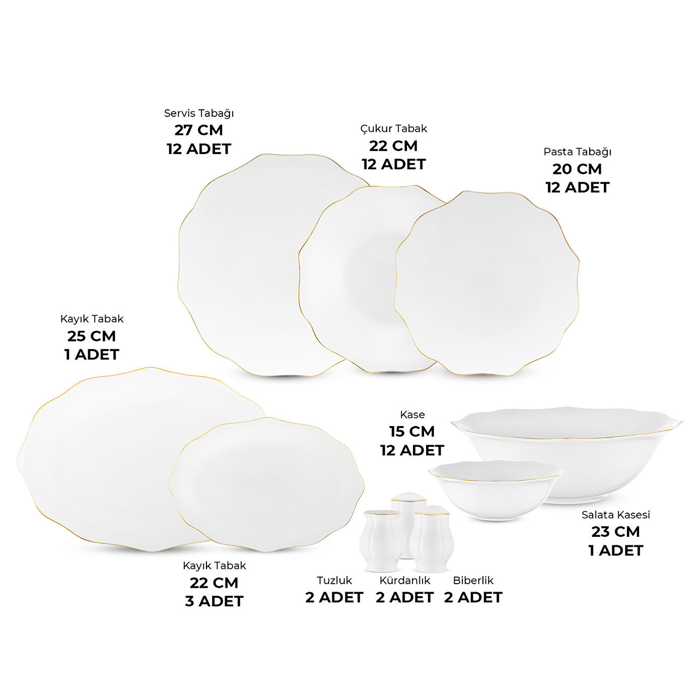 Emsan Maria Fine Bone 59 Parça 12 Kişilik Yuvarlak Yemek Takımı Gold
