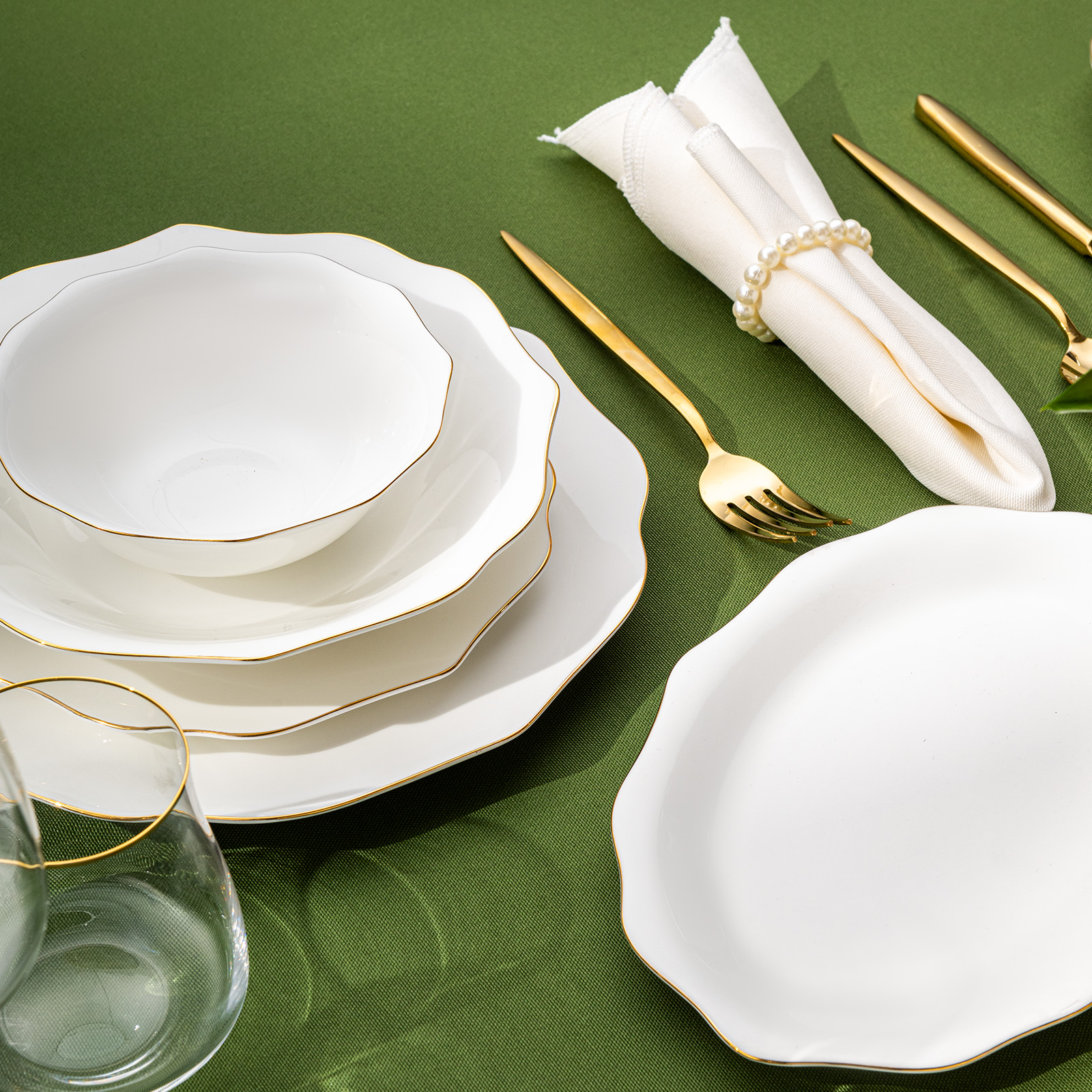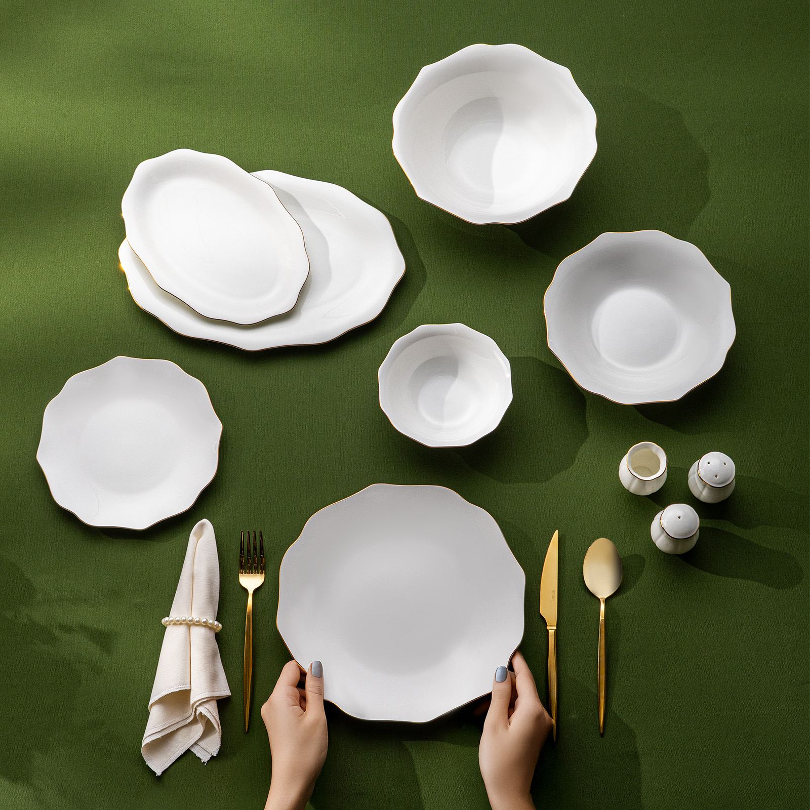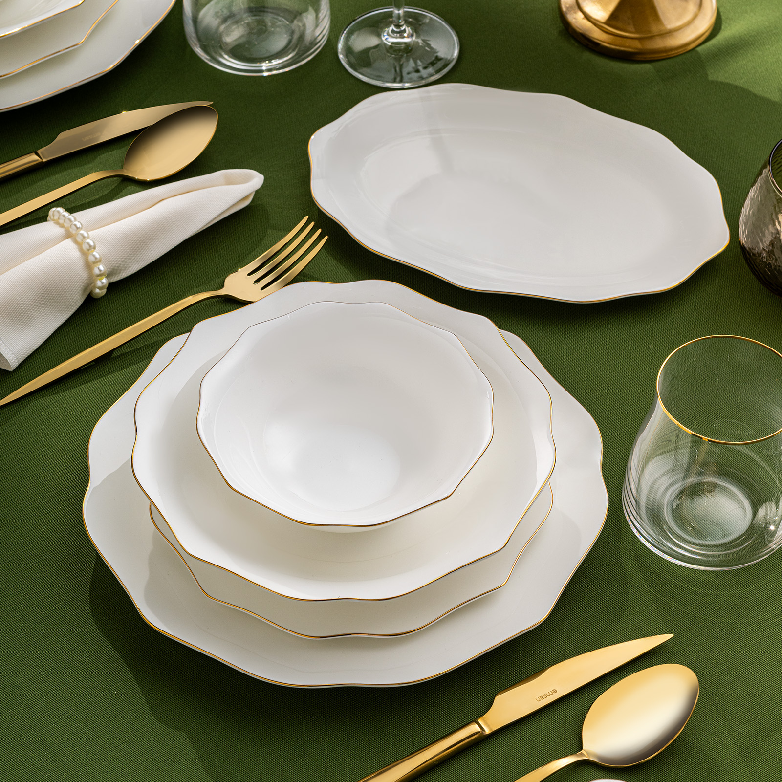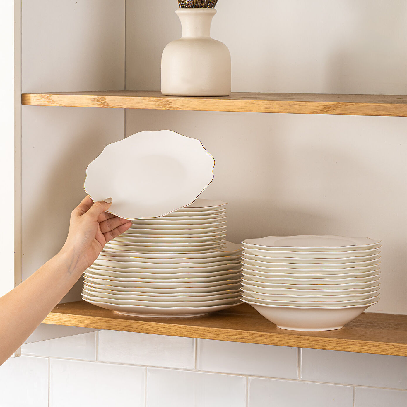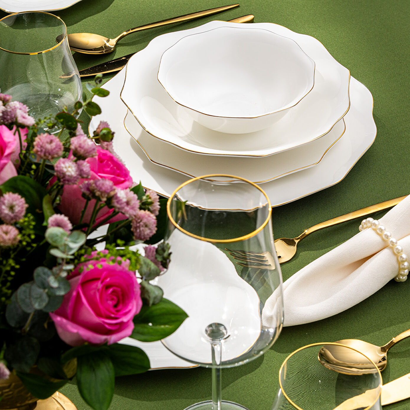 Emsan Maria Fine Bone 59 Parça 12 Kişilik Yuvarlak Yemek Takımı Gold