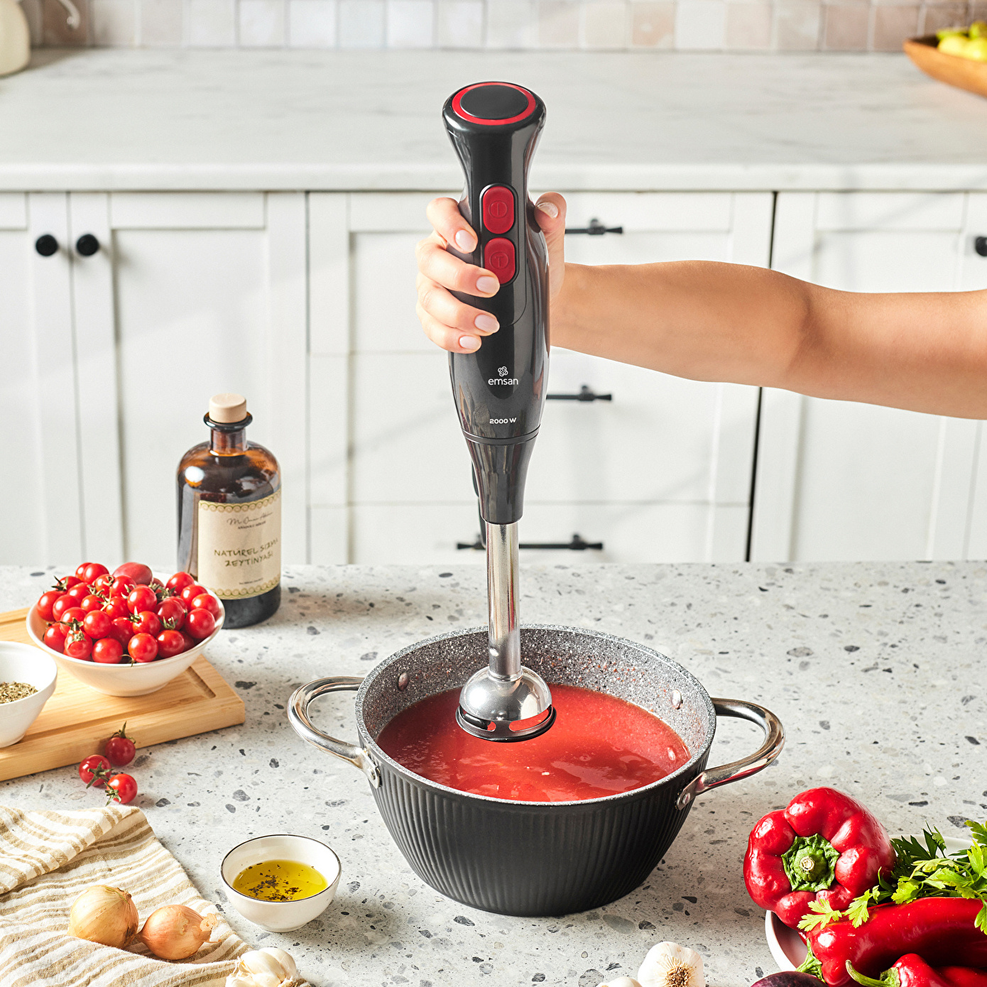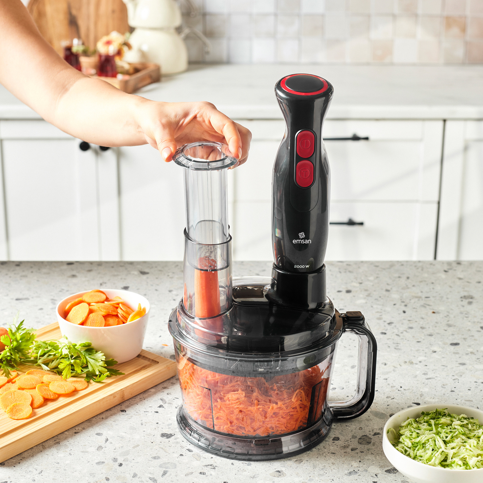 - 2000W yenilenmiş yüksek performanslı güçlü motoru sayesinde saniyeler içerisinde doğrama, çırpma ve parçalama işlemlerini gerçekleştirir.