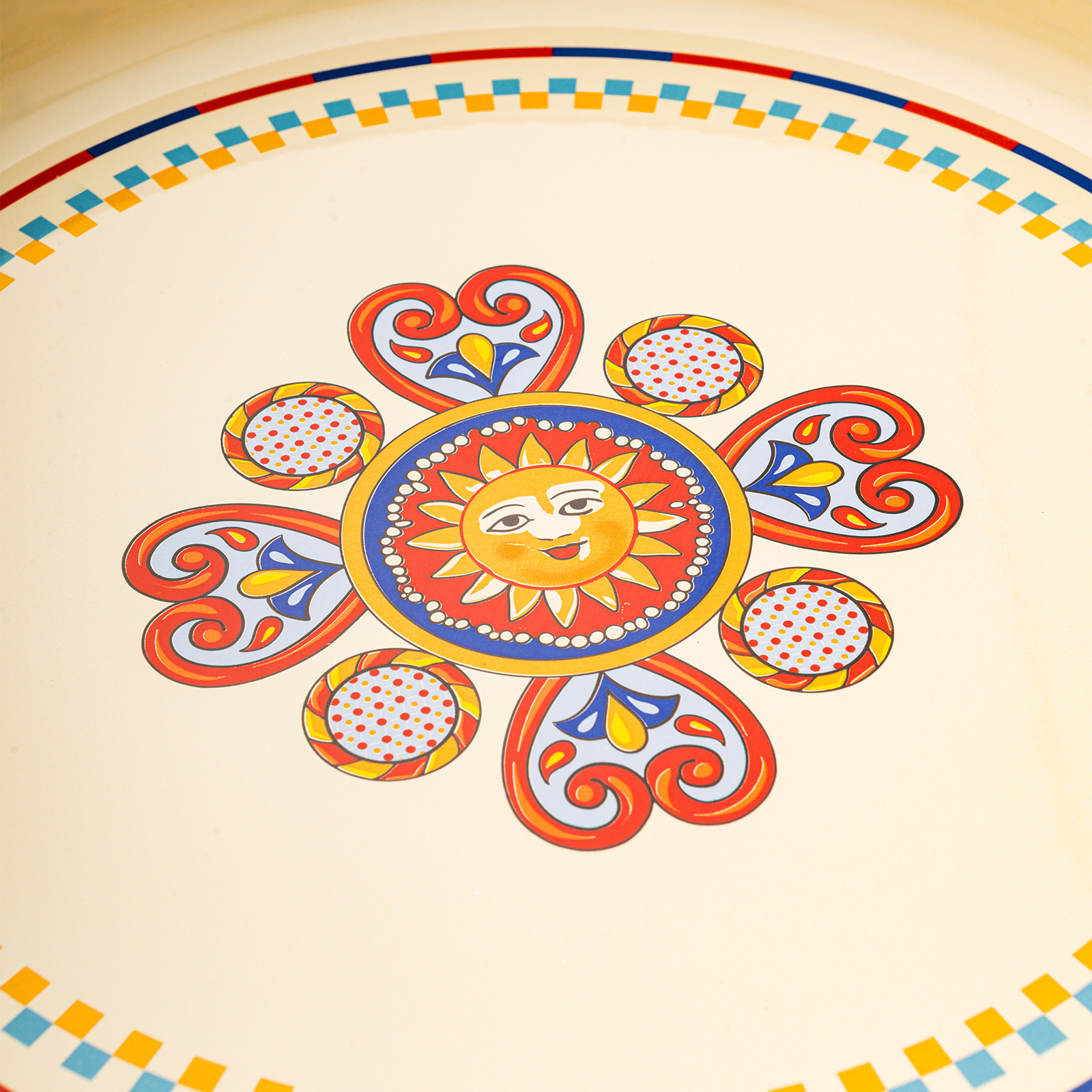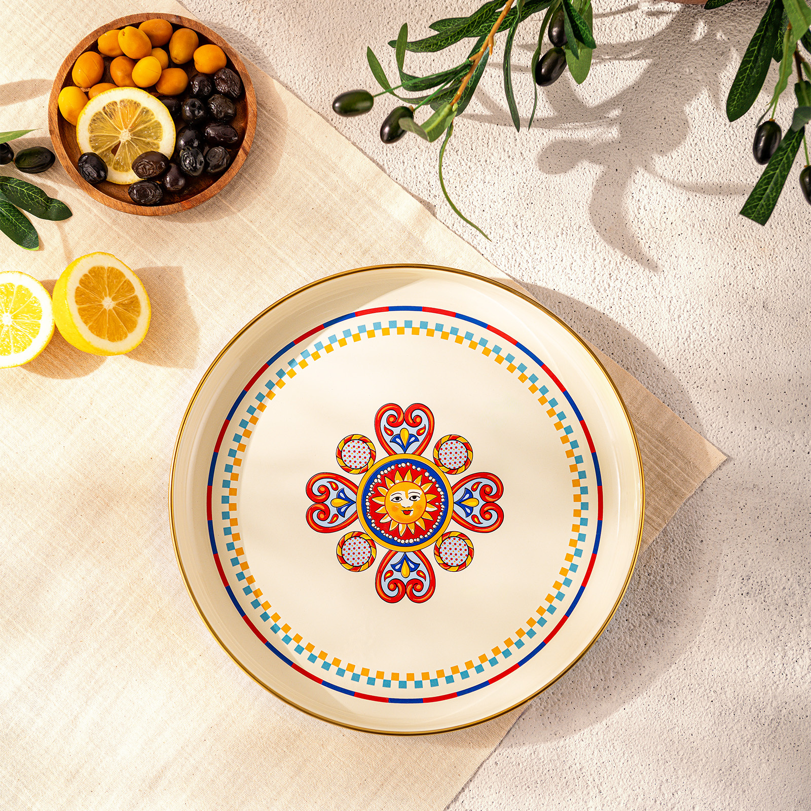 • Servis ve Sunum Ürünleri: Çukur tabak, pasta tabağı, servis tabağı, sunumluk ve tepsi; sofralarınıza yazın enerjisini yansıtan desenleriyle şıklık katarken, günlük kullanımdan özel davetlere kadar geniş bir kullanım sunar.