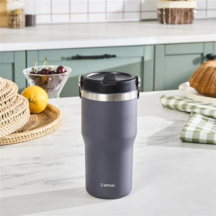 Emsan Star Ice Pipetli Çelik Sızdırmaz Termos Antrasit 550 ml
