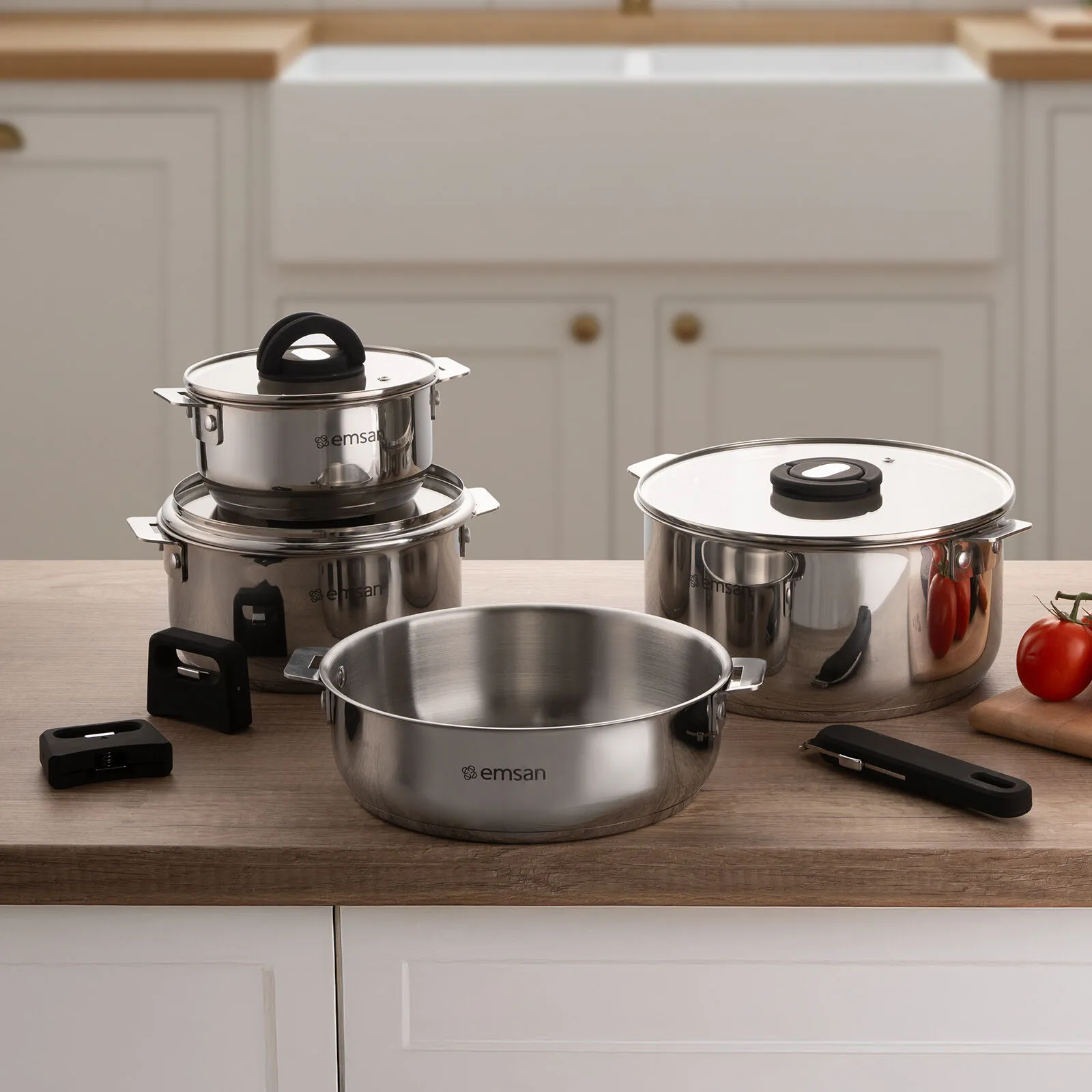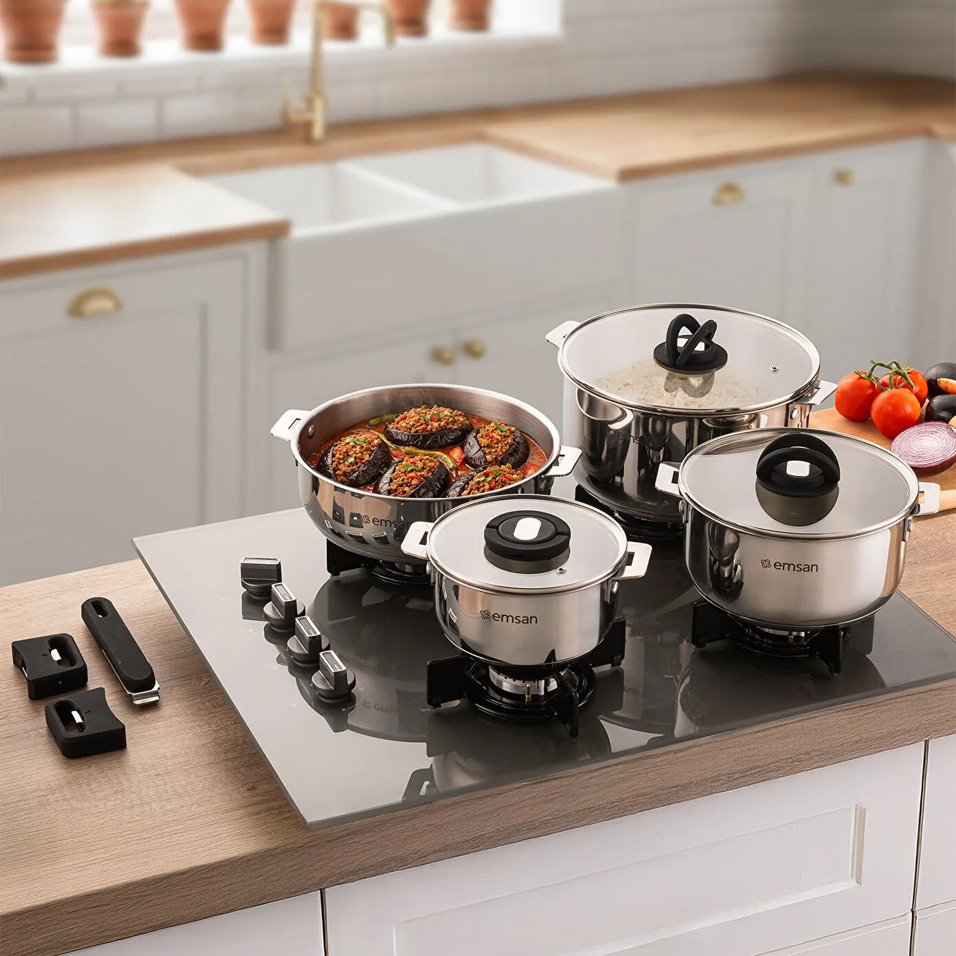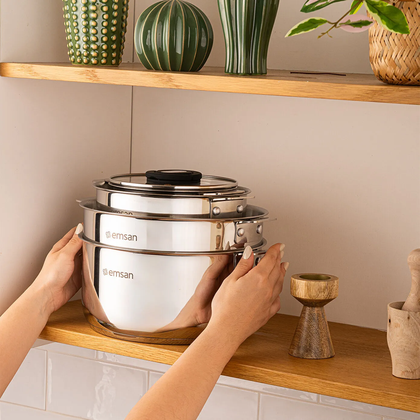 Emsan Steel Click 7 Parça Tencere Seti Açık Gri