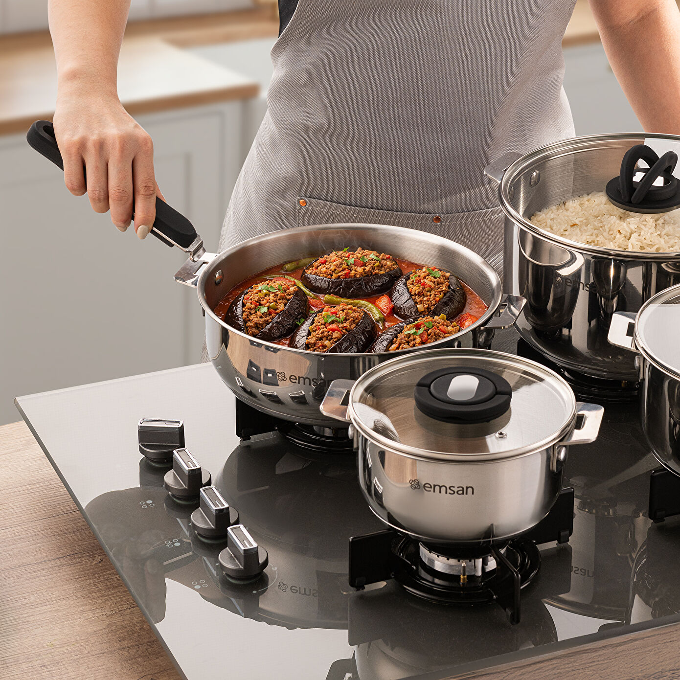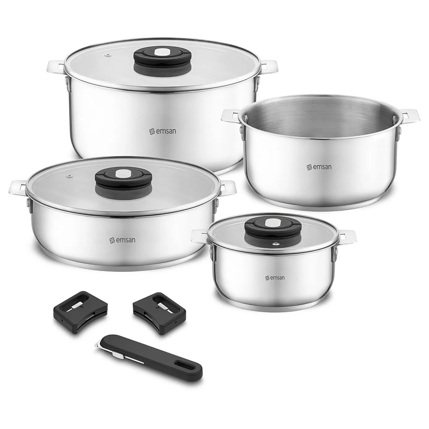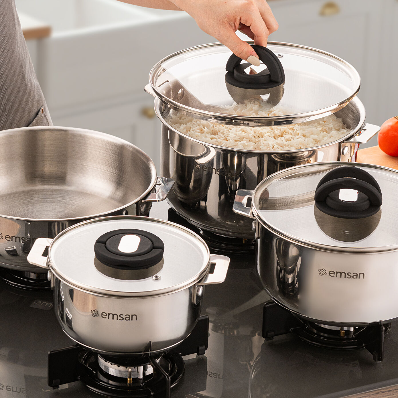 Emsan Steel Click 7 Parça Tencere Seti Açık Gri