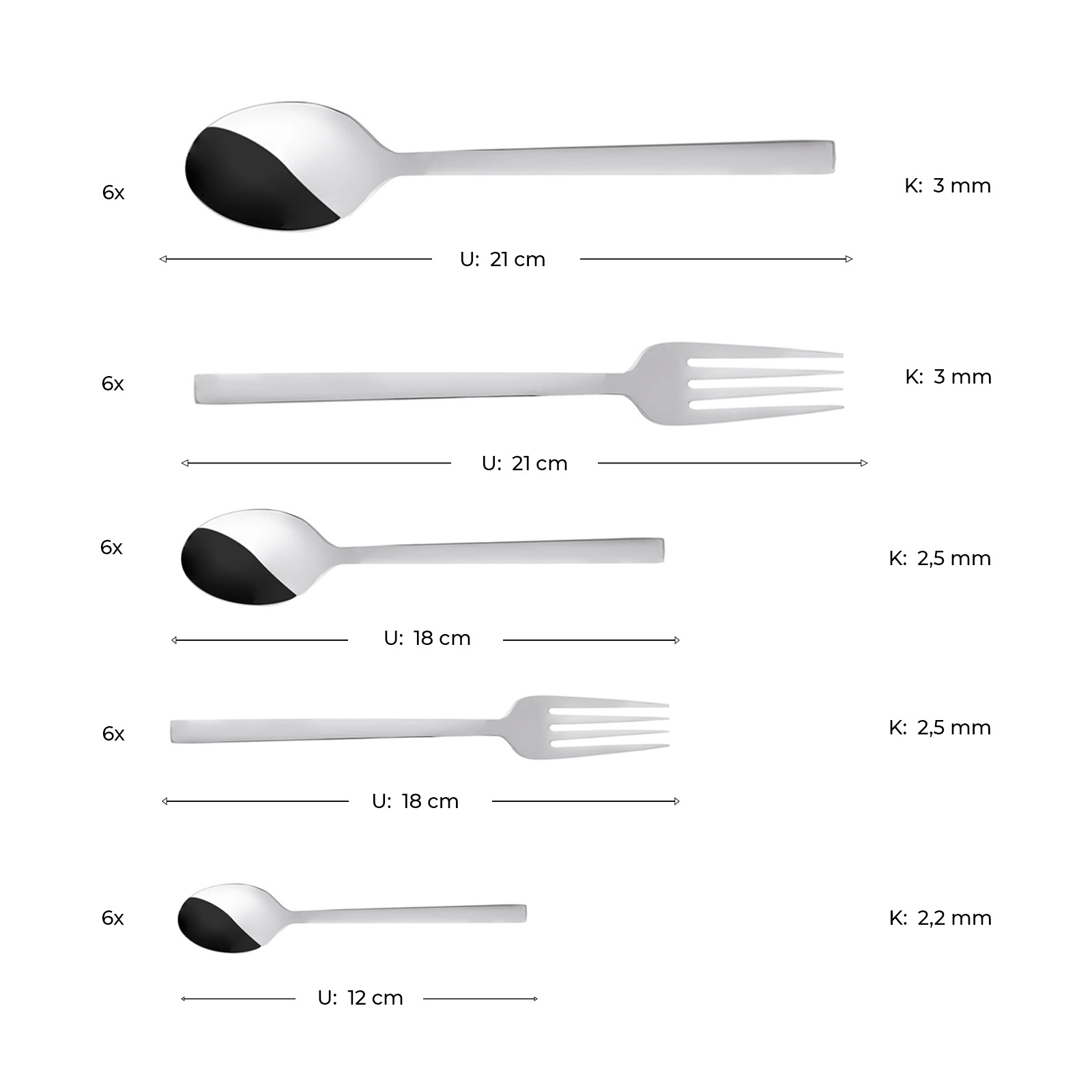 - 6 Adet Tatlı Kaşığı (18 cm – 2,5 mm)