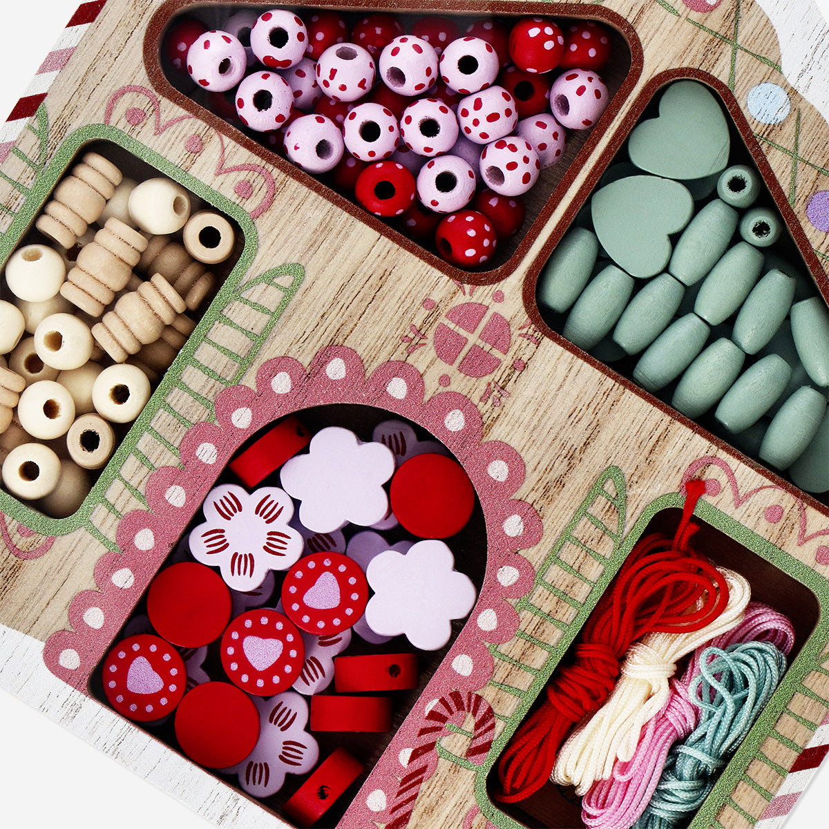 Ev Şeklinde Kutuda Boncuk Seti, yaratıcılığı teşvik eden ve saatlerce eğlence sunan sevimli bir el işi setidir. 120 adet ahşap boncuk ve 4 ipten oluşan bu set, 1,7 x 17,5 x 18,8 cm boyutlarındaki dekoratif ev şeklinde kutuda sunulur. Çok renkli boncuklar; yıldız, kalp ve yuvarlak gibi neşeli şekillerle tasarlanmış olup, mevsimsel tonlarıyla tatil dönemine canlı bir atmosfer katar. Takı yapımı, süs oluşturma veya el yapımı hediyeler hazırlamak için idealdir. Dayanıklı kutusu, boncukları düzenli tutarken aynı zamanda dekoratif bir öğe olarak kullanılabilir.