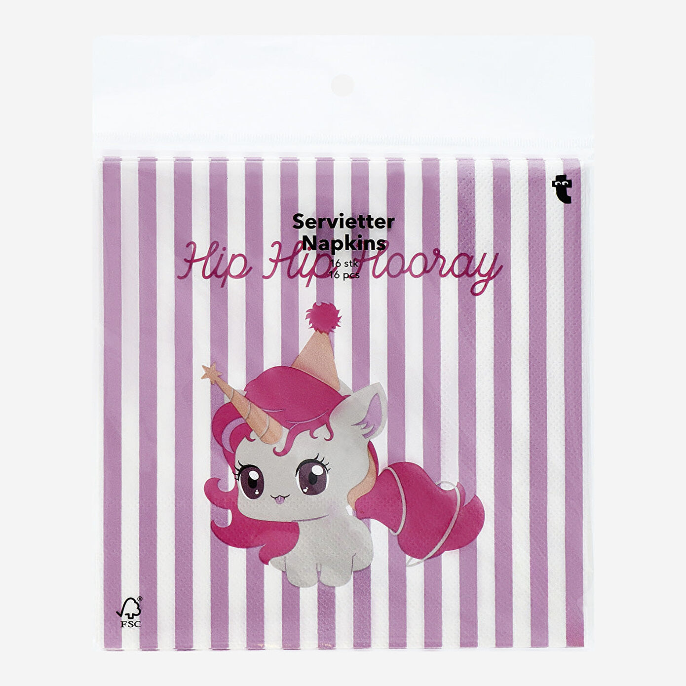 16'lı Pembe Unicorn Desenli Çizgili Kağıt Peçete, doğum günü ve diğer kutlamalarınıza eğlenceli ve şenlikli bir dokunuş katmak için mükemmel bir seçimdir. Her biri katlandığında 16,5 x 16,5 cm ölçülerinde olan bu kağıt peçeteler, yiyecek ve içecek servisi yaparken veya elleri silerken kullanmak için idealdir. Kutlamalar sırasında masanıza neşeli bir hava katan bu peçeteler, eğlenceli unicorn baskısı ve şenlikli detaylarıyla partinizi daha da keyifli hale getirir.