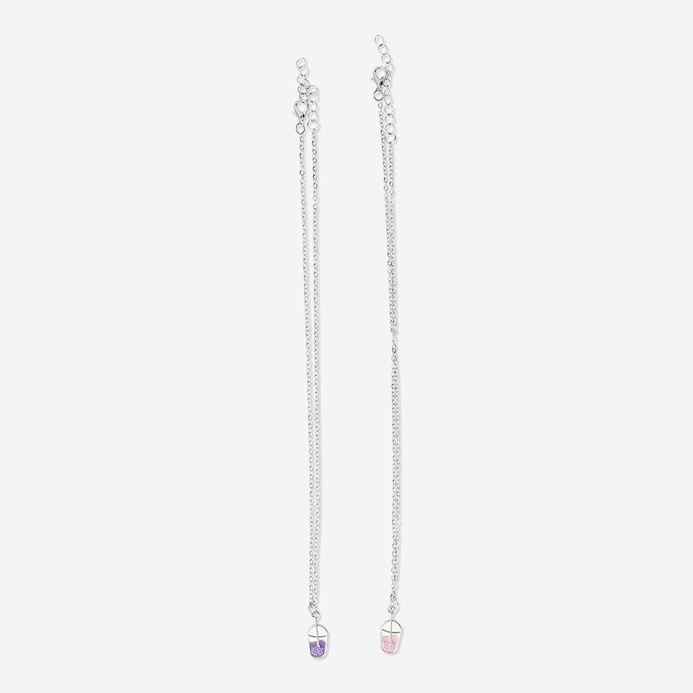 2'li Bubble Tea Detaylı Arkadaşlık Kolyesi Seti, en yakın arkadaşınıza özel ve anlamlı bir hediye sunmanın harika bir yoludur. 41 x 2 x 0,2 cm ölçülerindeki bu gümüş renkli metal kolyeler, her biri sevimli bubble tea figürüyle tasarlanmıştır ve özel anlarınıza tatlı bir dokunuş katar. Eğlenceli tasarımı ve modaya uygun detaylarıyla, arkadaşlık bağınızı kutlamak için mükemmel bir aksesuardır.