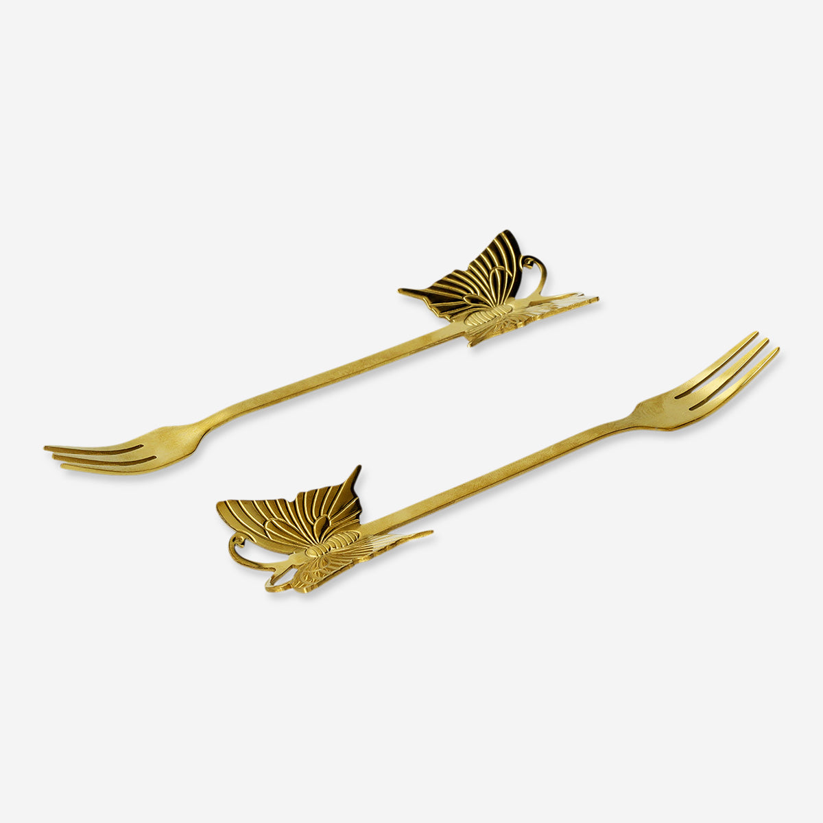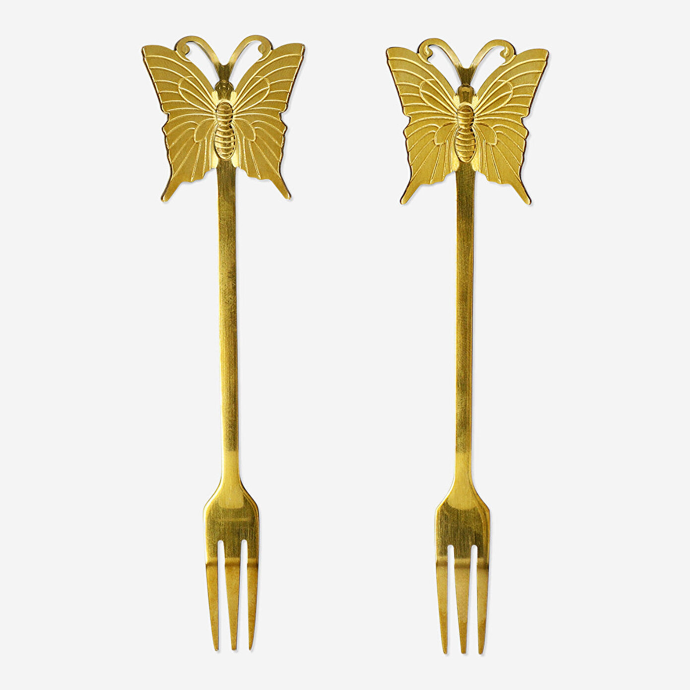 Hafif ve kullanımı kolay olan 2'li Kelebek Detaylı Gold Atıştırmalık Çatalı Seti, şıklığından ödün vermeksizin, aperatiflerin ve tatlıların servisi için mükemmeldir. Altın rengi ve kelebek deseninin oluşturduğu zarif tasarım, herhangi bir ortamda dikkat çeker, misafirlerinizi etkileyecek ve masanıza renk katacaktır. Bu şık atıştırmalık çatallarıyla yemeklerinizi sunarken hem işlevselliği hem de zarafeti bir araya getirin.