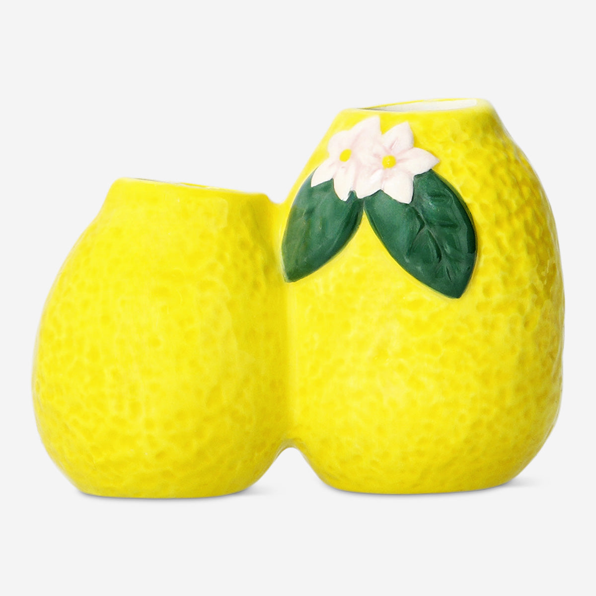 2'li Sarı Limon Şeklinde Seramik Vazo ile dekorunuza ferah bir dokunuş katın. Seramikten üretilen bu şık vazo, birbirine güzelce bağlanmış iki limon ile benzersiz ve eğlenceli bir tasarıma sahiptir. 11,6 x 8,4 x 6,3 cm boyutlarındaki kompakt boyutu, küçük çiçekler veya dekoratif çiçek sapları sergilemek için mükemmeldir. Parlak sarı rengi, vazonun neşeli görünümünü vurgular ve onu her evde dikkat çeken bir parça haline getirir.