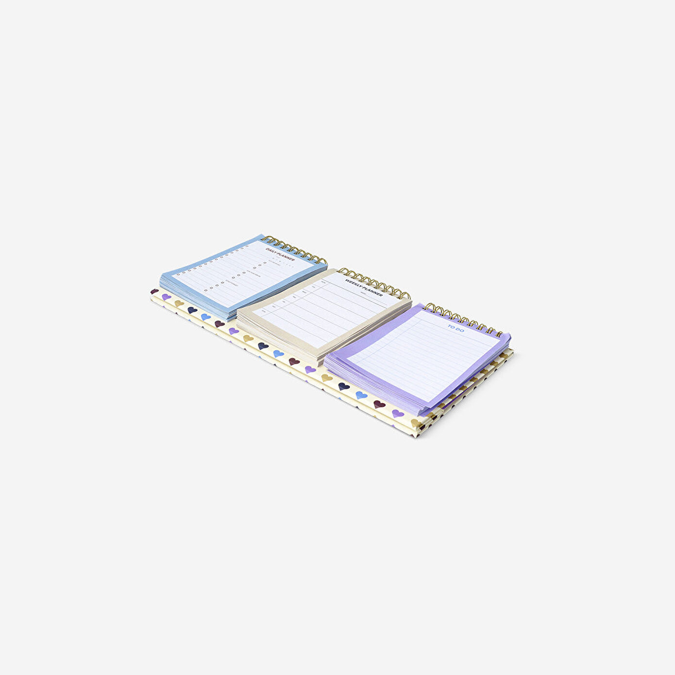 3'ü 1 Arada Masaüstü Planlayıcı, iş ve günlük hayatınızı organize etmenin mükemmel bir yoludur. Bu kullanışlı planlayıcı, üç farklı bölmeye sahiptir, bu sayede her bölümde ayrı görevlerinizi ve önceliklerinizi düzenleyebilirsiniz. Birinci bölüm, günün yapılacaklar listesini yazmanız için idealdir, ikinci bölüm ise haftalık veya aylık planlarınız için ayrılabilir. Üçüncü bölüm ise önemli notlar veya hatırlatmalar için kullanılabilir, böylece tüm bilgiler tek bir yerde toplanmış olur.