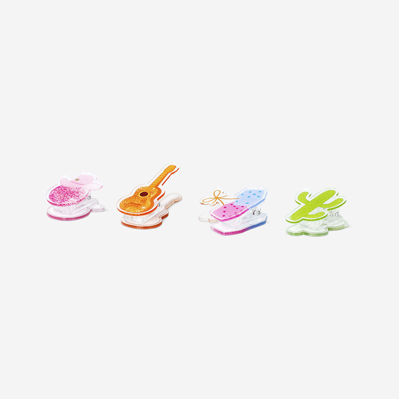 4'lü Vahşi Batı Temalı Klips ile çalışma alanınıza eğlenceli ve dekoratif bir dokunuş katın. Kovboylardan ilham alan bu dörtlü set, kaktüs, gitar, çizme ve kovboy şapkası gibi ikonik tasarımlar içerir. Metalden üretilen bu klipsler, kağıtları, notları veya belgeleri düzenli bir şekilde tutmak için mükemmeldir, böylece ofis ve ev kullanımında işlevselliği şıklıkla birleştirir.