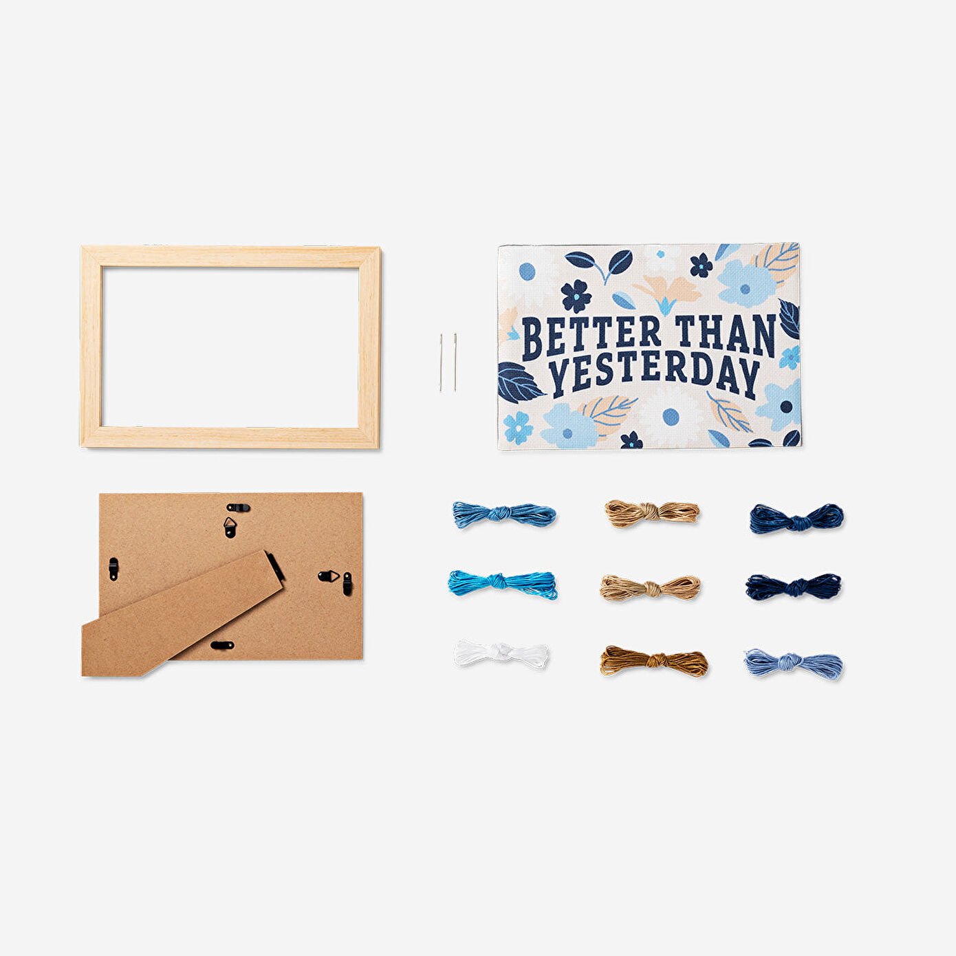 Ahşap Çerçeveli Kanaviçe Kiti, hem yaratıcılığı hem de zihinsel farkındalığı artırmak için mükemmel bir araçtır. Bu çapraz dikiş seti, "Better Than Yesterday" (Dünden Daha İyi) motivasyonel mesajını içeren önceden basılmış bir kanvas, uyumlu renklerde nakış iplikleri, iğneler ve tamamlanan eserinizi sergilemek için şık bir ahşap çerçeve sunar. Canlı çiçek desenleri ve anlamlı alıntı, her beceri seviyesindeki kişilere keyifli ve tatmin edici bir el işi deneyimi sunar.