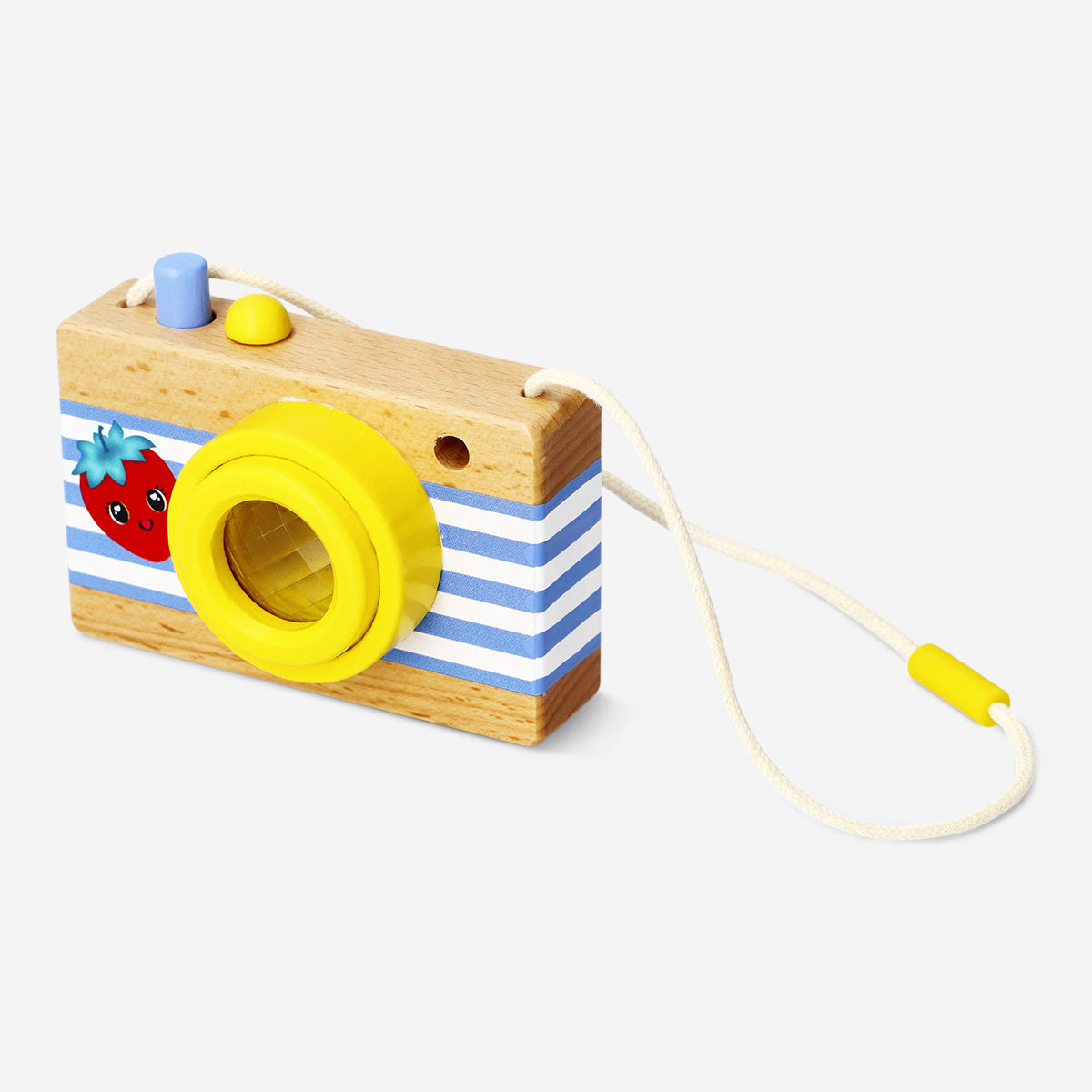 Ahşap Oyuncak Fotoğraf Makinesi ile çocuğunuzun hayal gücünü harekete geçirin ve dünyayı keşfetmeye teşvik edin. 10 x 7,2 x 4,6 cm boyutlarındaki bu oyuncak, ahşaptan üretilmiş olup, eğlenceli çilek ve çizgili detaylarla süslenmiş canlı renkli bir tasarıma sahiptir. Kamera şeklindeki tasarım, çocukların fotoğrafçılıkla ilgili temel kavramları keşfetmeleri için mükemmel bir araçtır. Ayrıca, oyuncak kaleydoskop merceği ile günlük sahneleri büyülü desenlere dönüştürerek çocukların keşfetme isteğini artırır.