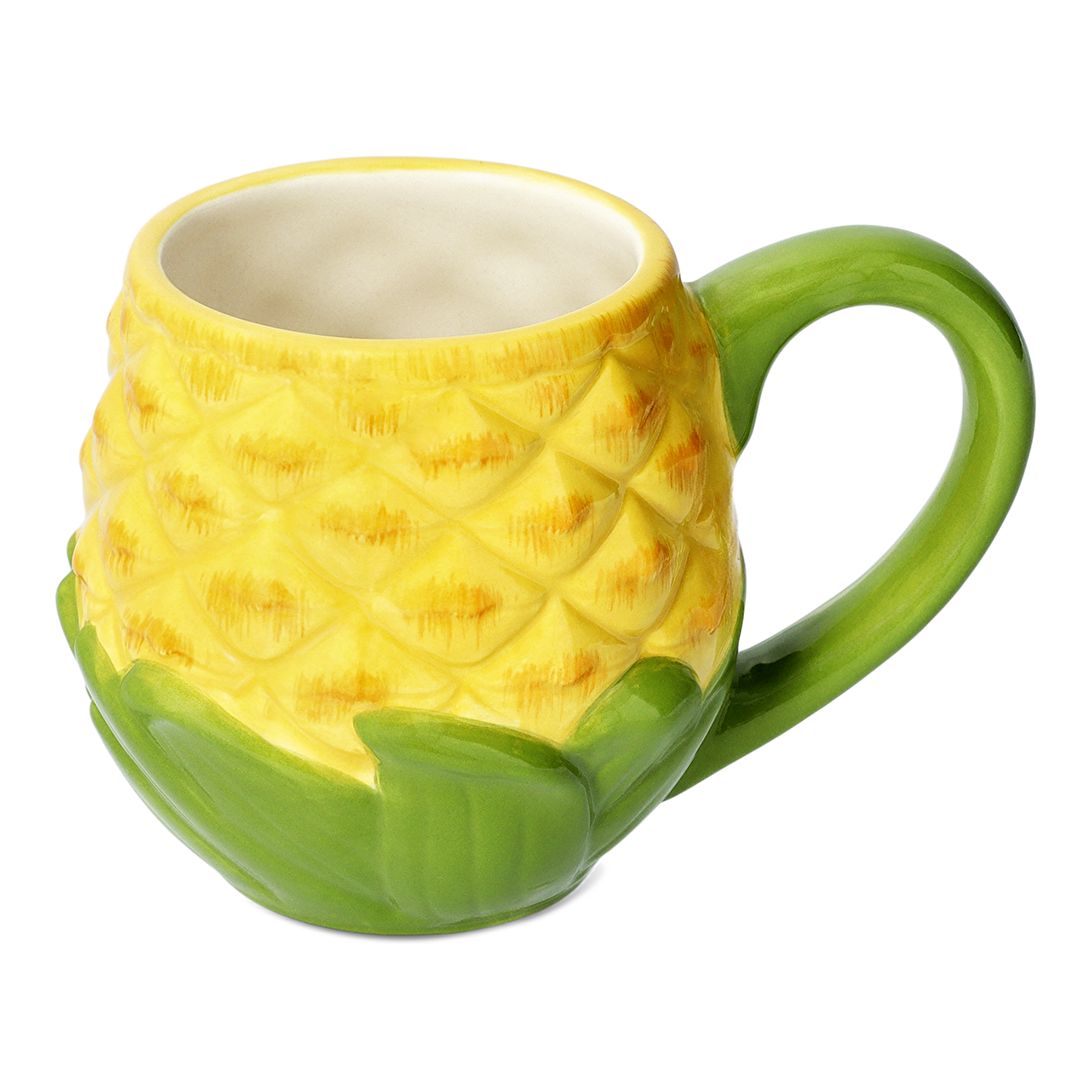 14,9 x 9,9 x 11 cm ölçülerindeki kupa, rahat tutuş sağlayan kulp sayesinde kullanım kolaylığı sunar. Mikrodalga ve bulaşık makinesinde kullanılabilme özellikleriyle pratik bir kullanım sağlar, böylece her zaman kullanıma hazır olur. Hediye olarak da mükemmel olan Ananas Şeklinde Seramik Kupa 420 ml, tropikal bir tema arayanlar için harika bir seçenek oluşturur.