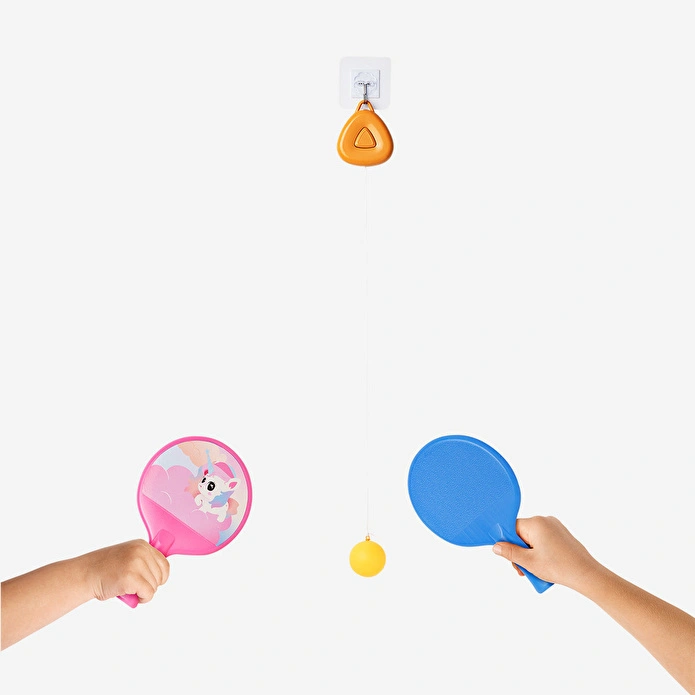 Asılabilir Tenis Seti, masa gerektirmeden hızlı ve eğlenceli tenis oyunları oynamanızı sağlayan kompakt bir set olarak tasarlanmıştır. 12,4 x 20 x 2,4 cm boyutlarındaki bu set, her türlü ortamda kullanılabilir ve kolayca taşınabilir. İki raket, iple bağlı bir top ve topu asmanıza olanak tanıyan monte edilebilir aparat içerir. Bu yenilikçi tasarım, topun oyun boyunca kontrol altında kalmasını sağlar, böylece topun kaybolmasını önler ve kesintisiz eğlenceyi garantiler.