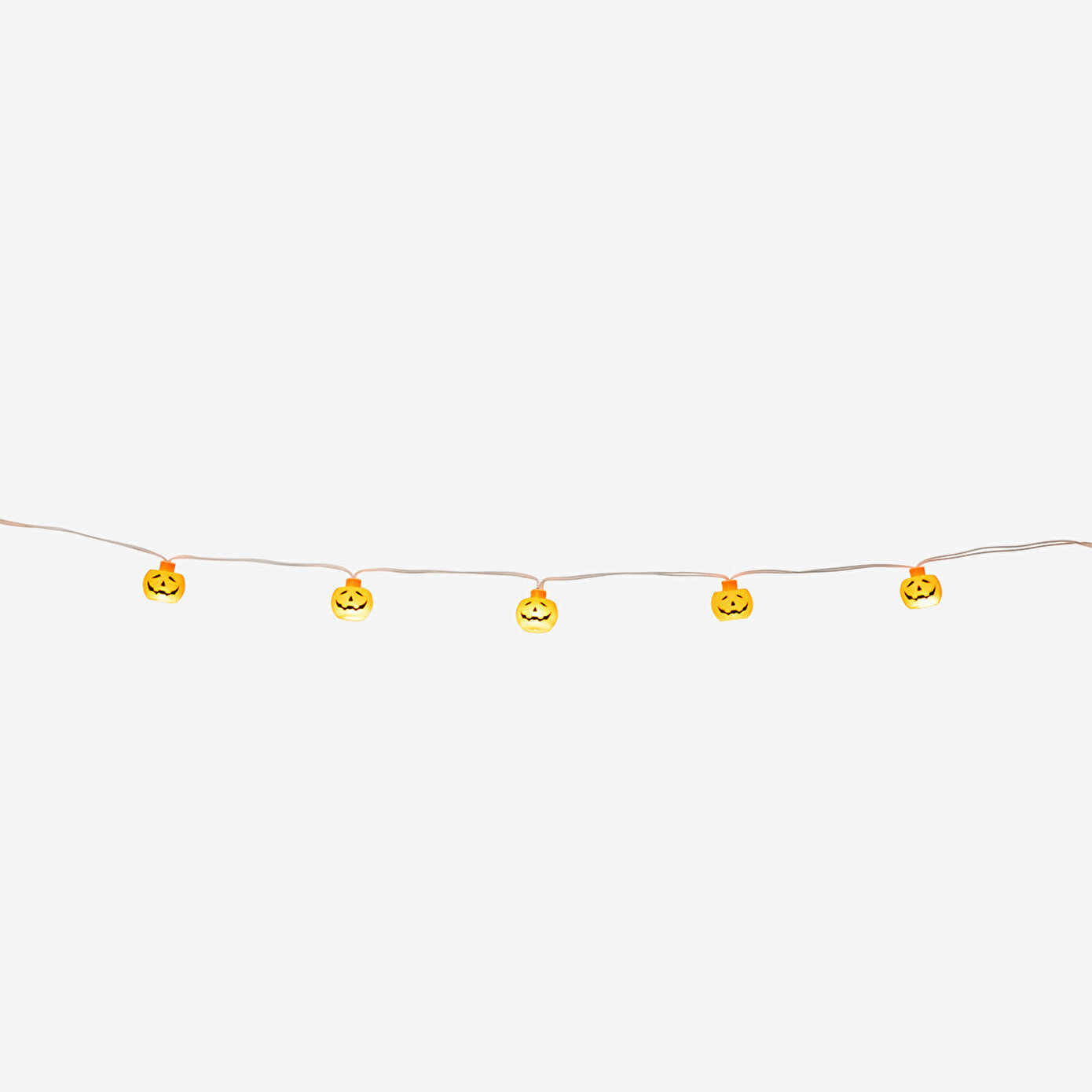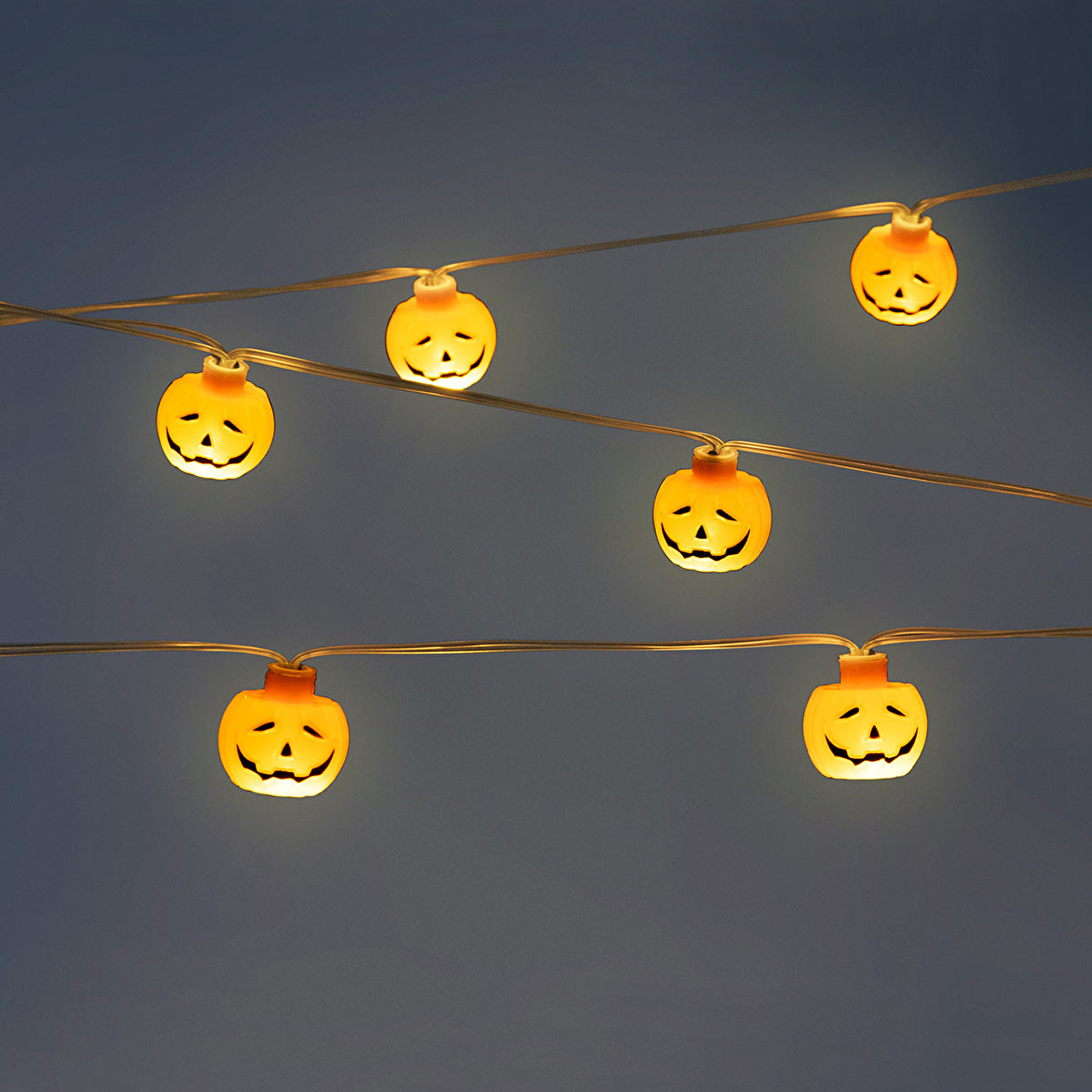 Balkabağı Desenli Işık Zinciri, sonbahar mevsiminin sıcaklığını ve Halloween ruhunu evinize taşıyan eğlenceli bir dekoratif parçadır. Sıcak turuncu tonlarda gülen kabak yüzlerinden oluşan bu zincir, bulunduğu her ortama şenlikli bir ışıltı katar. Toplam uzunluğu 260 cm olan ışıklar, şömine raflarına, pencere kenarlarına veya duvarlara kolayca asılabilir, böylece mekâna hem neşeli hem de davetkar bir atmosfer kazandırır.