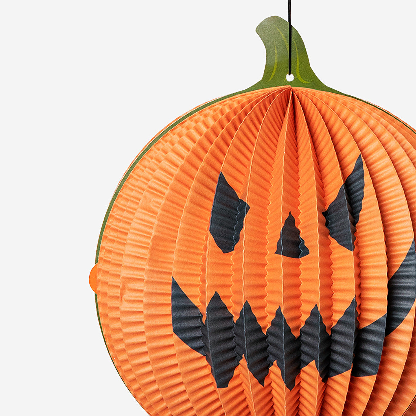 Balkabağı Şeklinde Kağıt Süs, yüz detayları ve yeşil yaprak vurgusuyla mevsimsel dekorunuza neşeli bir karakter katıyor. 20 x 23,8 cm boyutlarındaki bu kağıt süs, bal peteği şeklinde katlanabilir tasarımı sayesinde kolayca kurulup kullanılabiliyor. Halloween partileri veya sonbahar kutlamaları için mükemmel olan bu dekor, masalara, pencerelere veya kapı girişlerine asıldığında eğlenceli bir atmosfer yaratıyor.