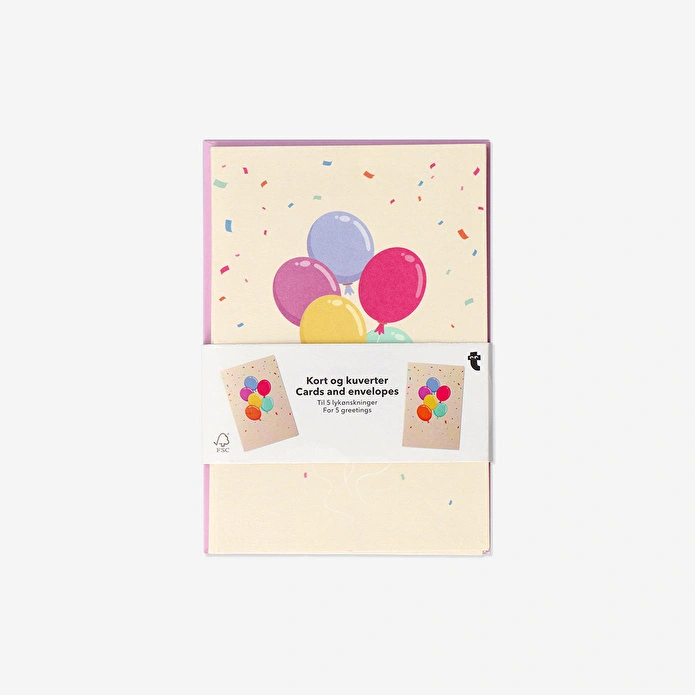 Balon Detaylı 5'li Tebrik Kartı, uçan renkli balonların ve neşeli konfeti desenlerinin süslediği tasarımıyla kutlamalara canlılık katar. Çok renkli illüstrasyonu, mutluluk ve şenlik havasını zarif bir şekilde yansıtarak doğum günlerinden özel anlara kadar her kutlamayı daha eğlenceli hale getirir. Sevdikleriniz için içten dileklerinizi samimi bir şekilde iletmek için mükemmel bir seçenektir.