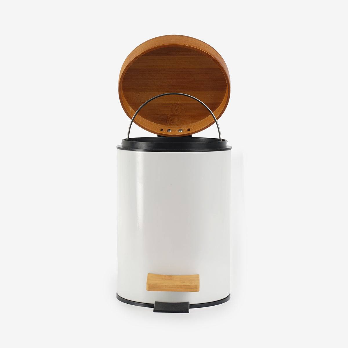 Banyonuzu şık bir şekilde yenilemek için bambu kapaklı beyaz çöp kutusu harika bir seçenektir. Modern tasarımı ve kullanışlı pedal özelliği ile elleriniz serbest kalır ve banyonuzda hem işlevselliği hem de estetik görünümü bir arada sunar. Bu çöp kutusu, her tür modern banyo dekoruyla mükemmel uyum sağlar.