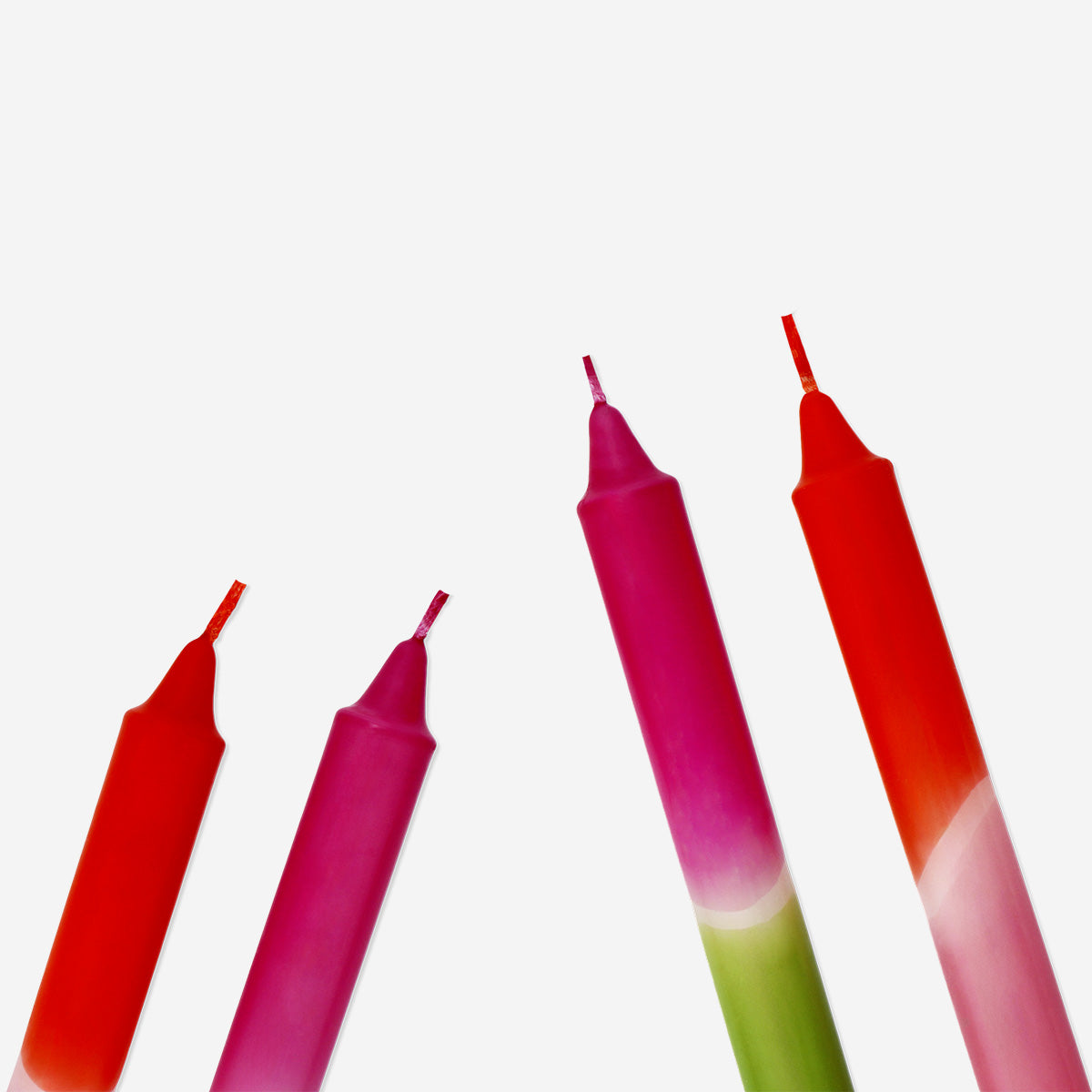 Çok renkli kaplama, klasik mum ışığına taze ve enerjik bir dokunuş katarak şenlikli akşam yemeklerinde veya mevsimsel dekorasyonlarda mükemmel bir seçenek haline gelir. Bu şamdan mumu, stil ve ışıltıyı bir araya getirerek evinizin atmosferini zenginleştirir ve her yemeğe, buluşmaya ya da özel ana eğlenceli bir hava katar.