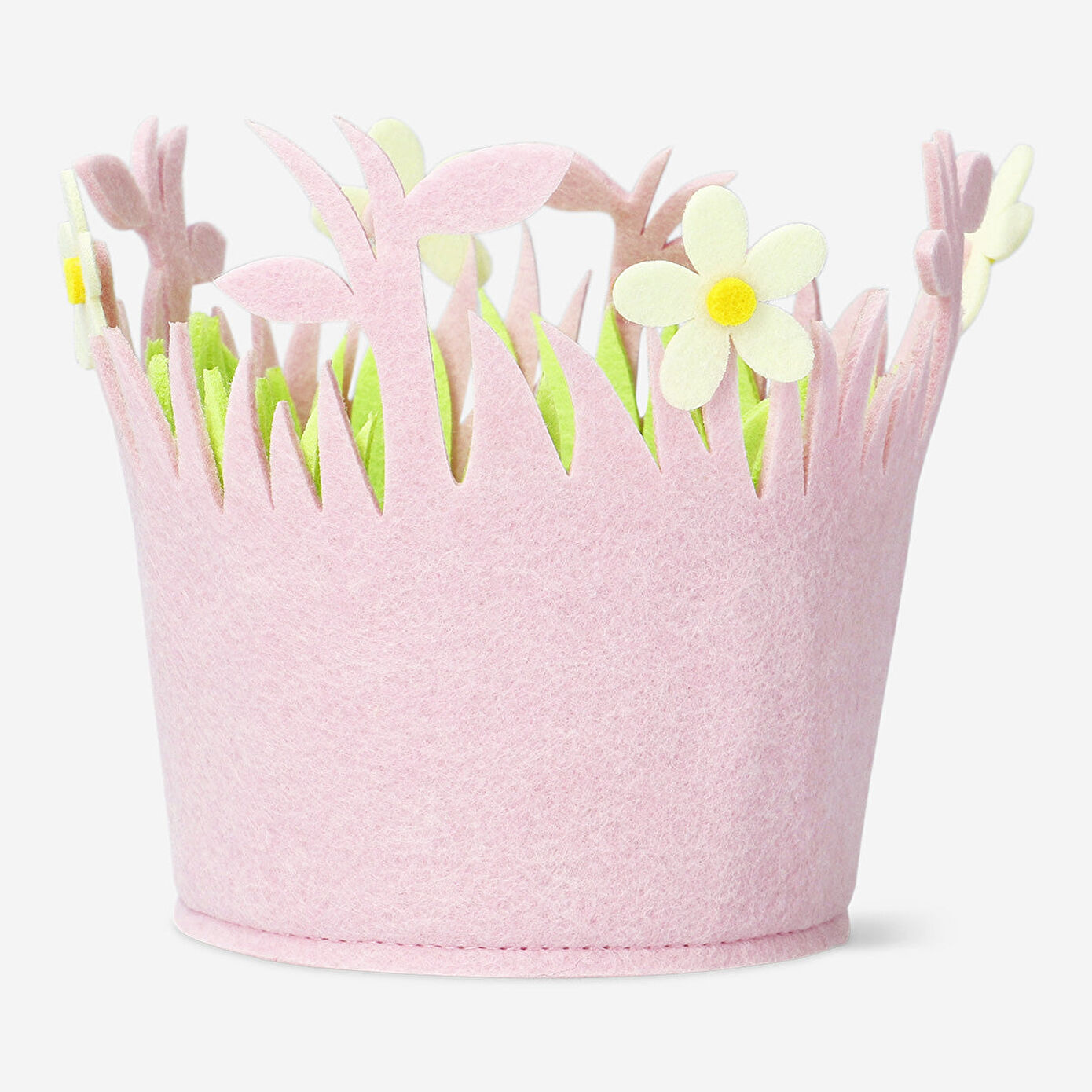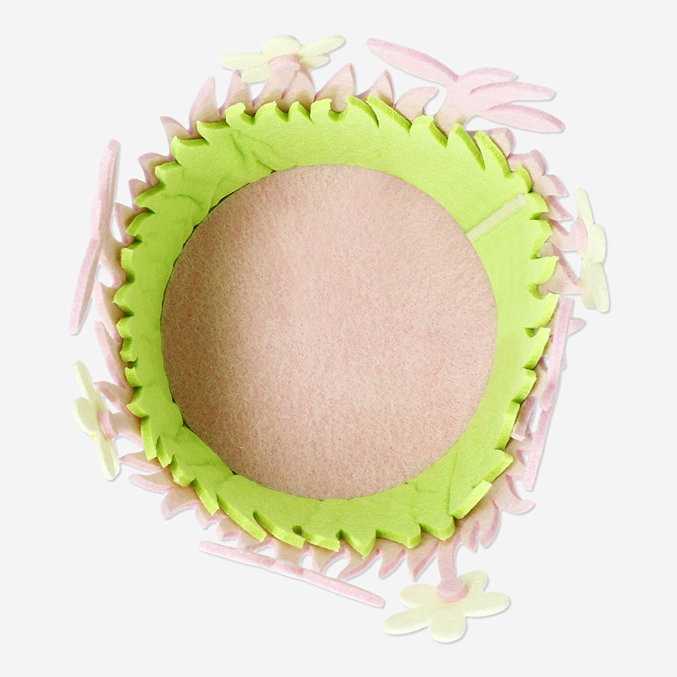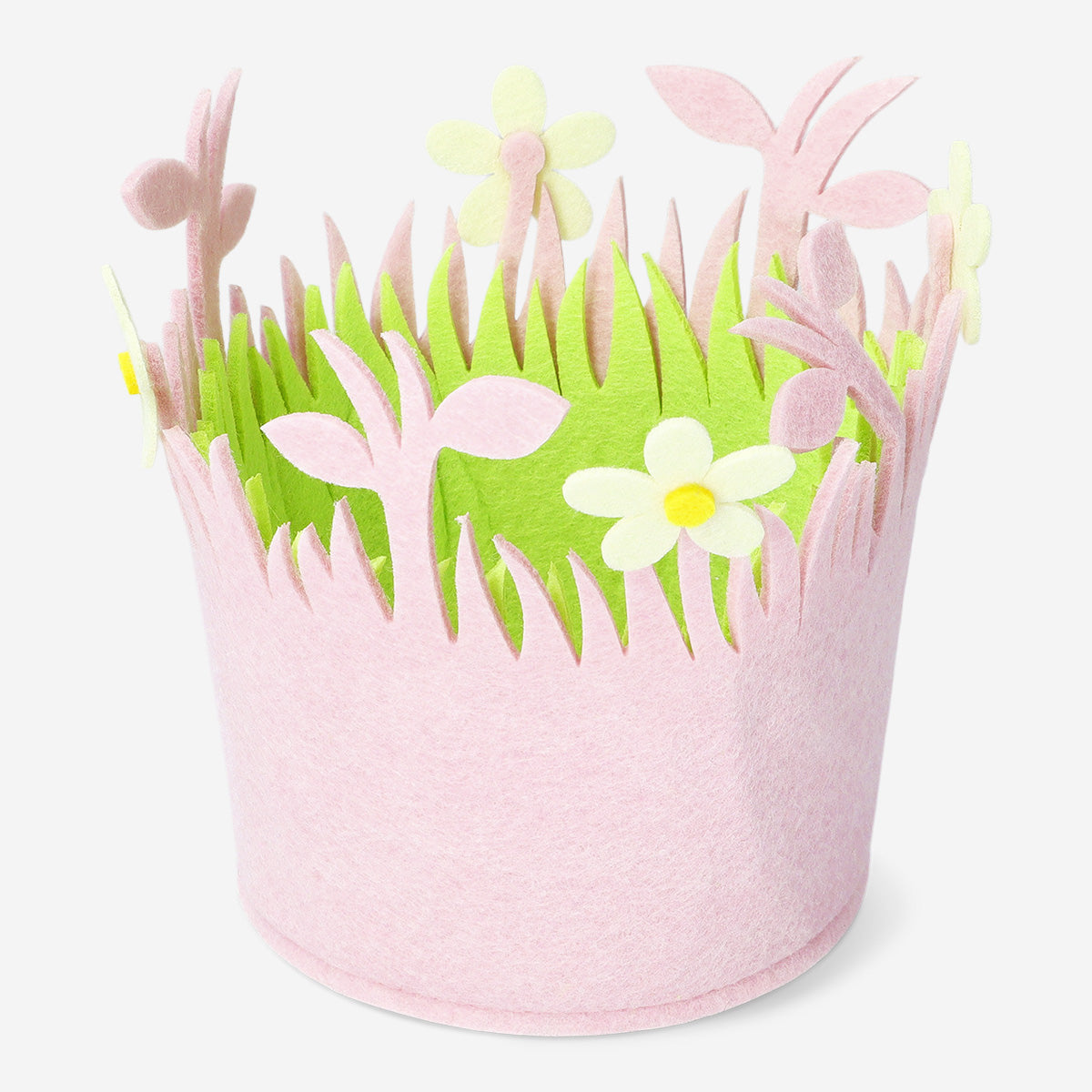Beyaz Çiçekli Pembe Orta Keçe Sepet, evinizin dekoruna tatil havası katacak şenlikli ve zarif bir aksesuardır. 17 x 14 x 17 cm ölçülerindeki bu orta boy sepet, yumuşak polyesterden üretilmiş olup narin beyaz çiçek detayları ve çimen benzeri kesik süslemeleriyle Paskalya ve tatil dekoruna mükemmel bir uyum sağlar. Tasarımı, baharın taze ruhunu evinize taşırken, aynı zamanda kullanışlı ve şık bir saklama çözümü sunar.