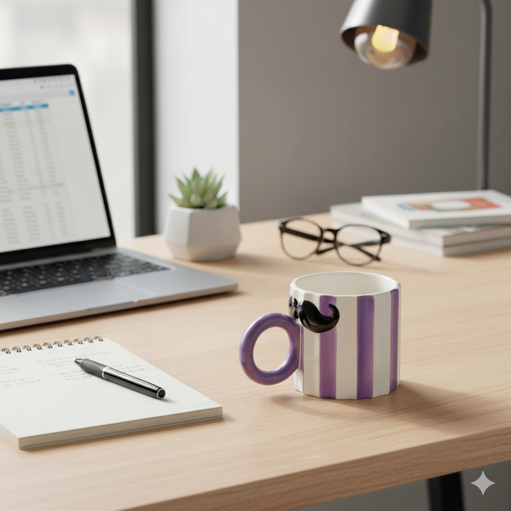 Canlı mor çizgiler ve kulpundaki eğlenceli kabartma bıyık tasarımı, her yudumda eğlenceli bir atmosfer yaratır. Bıyık Detaylı Mor Çizgili Seramik Kupa 350 ml, hem evde hem de ofiste kullanılmak üzere mükemmeldir ve her içeceğinizi içmeyi keyifli hale getirir. Günlük rutininize eğlenceli bir dokunuş eklemek için harika bir seçenek olan bu kupa, sıcak içeceklerinizi içerken yüzünüzde bir gülümseme yaratacaktır.