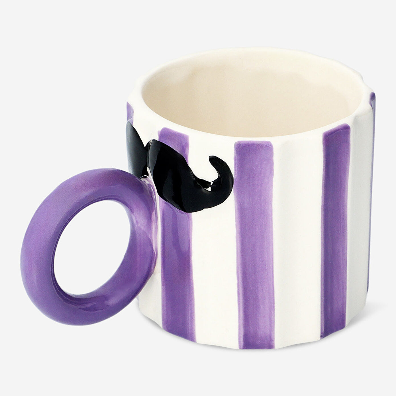 Flying Tiger Copenhagen Bıyık Detaylı Mor Çizgili Seramik Kupa