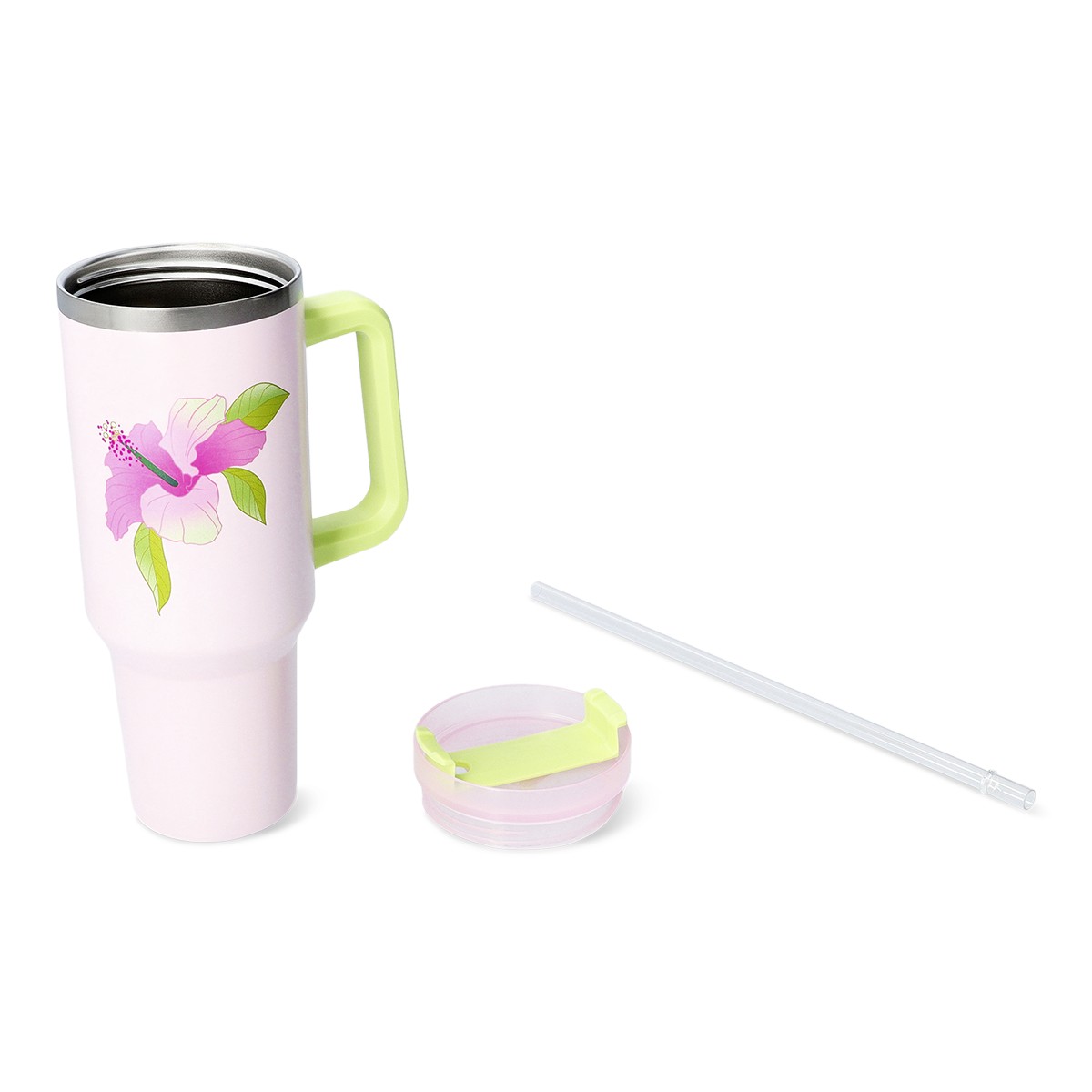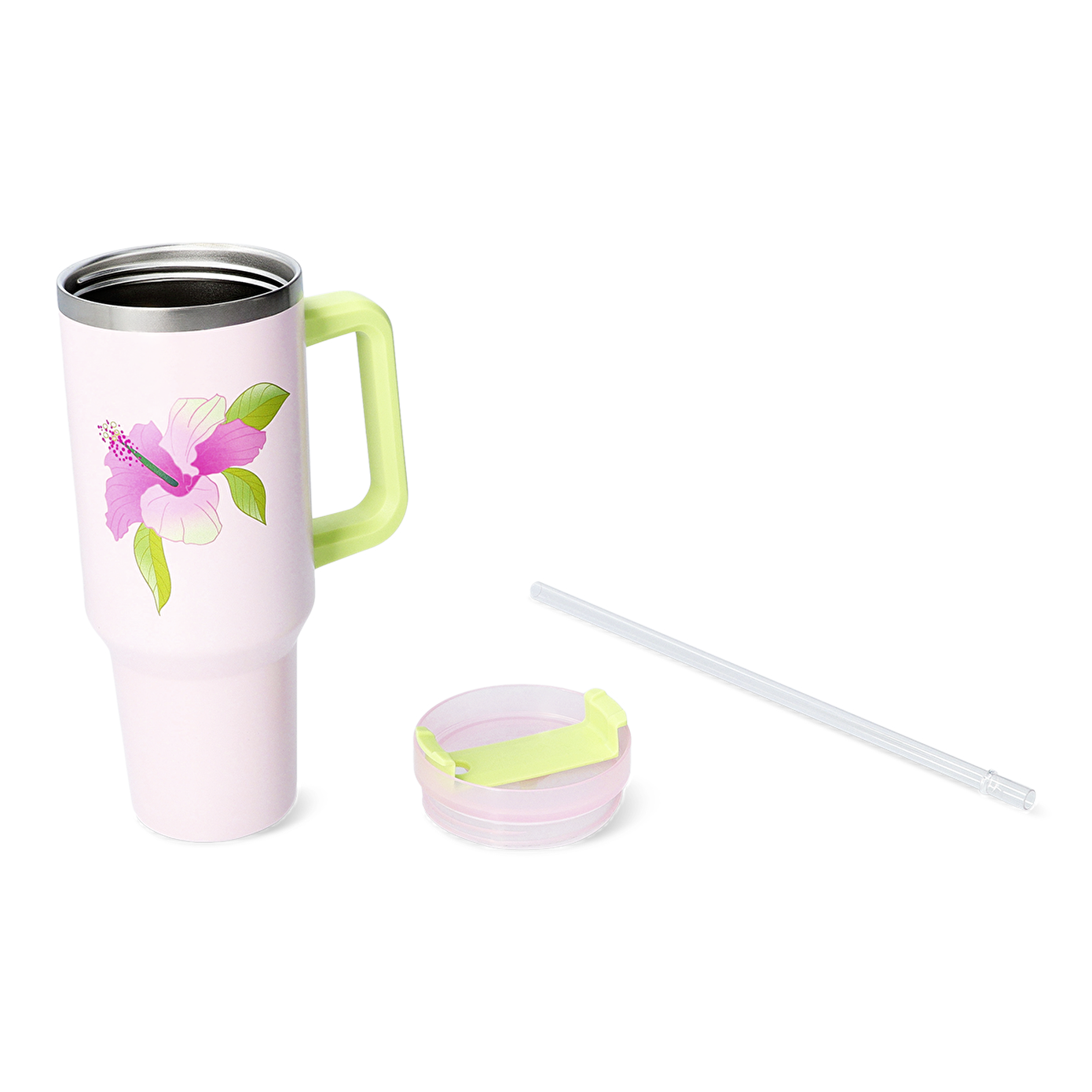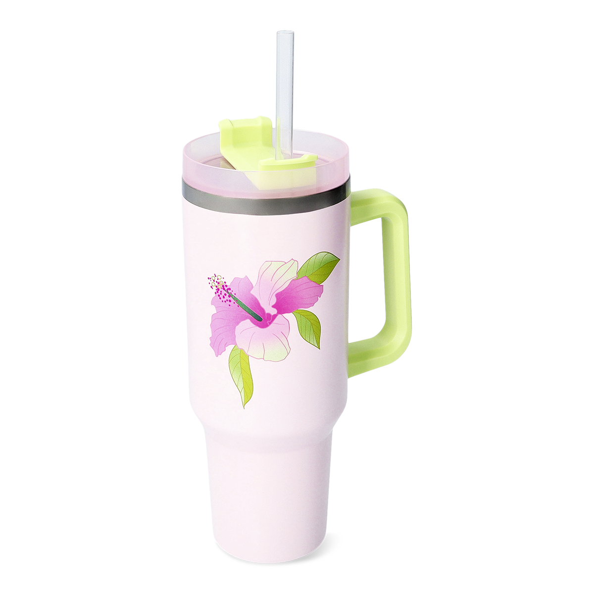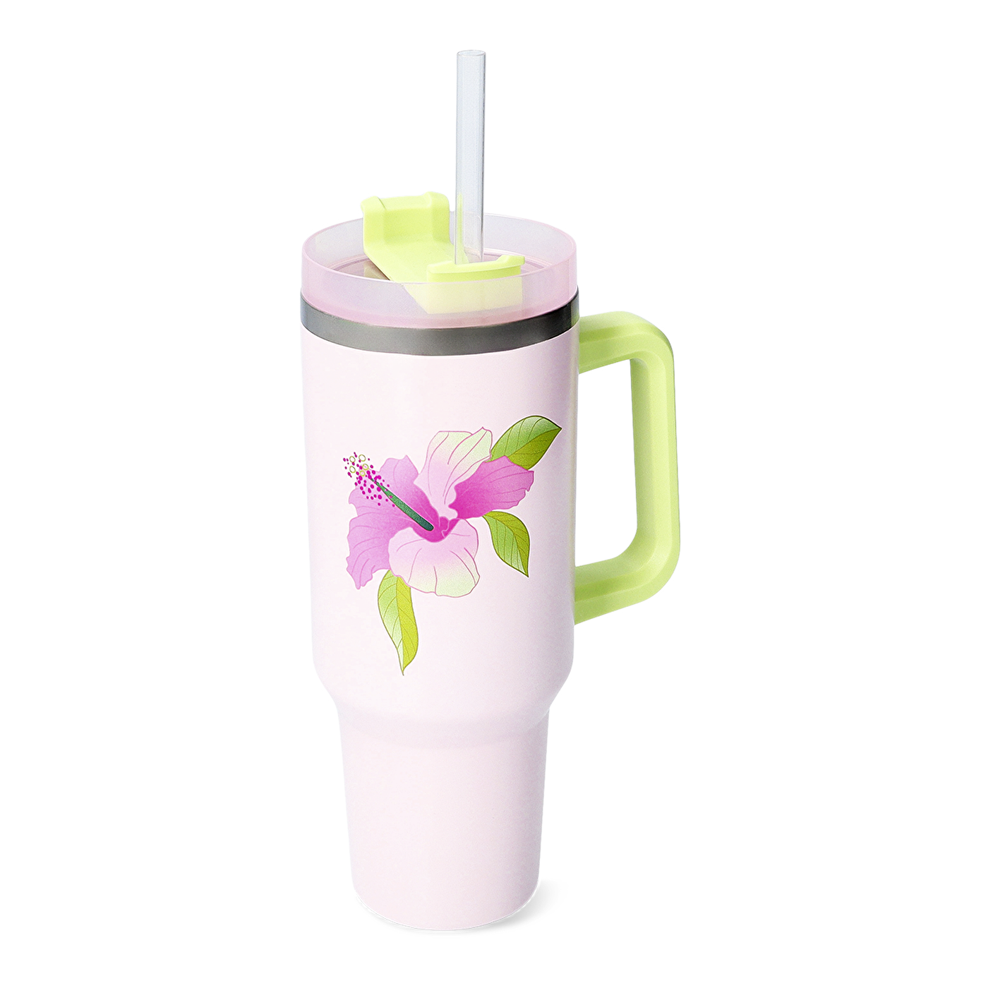 Çiçek Desenli Pembe Pipetli Matara, tropikal hibiscus desenli tasarımıyla içeceklerinize neşeli ve şık bir dokunuş katar. 1200 ml kapasitesiyle geniş bir içecek hacmi sunan bu su matarası, evde, ofiste veya seyahatte günlük su ihtiyacınızı karşılamak için mükemmeldir. 14,5 x 27 x 9,5 cm boyutlarındaki bardak, taşıması kolay bir tutacakla donatılmıştır ve güvenli kapak sayesinde dökülmeleri önler.