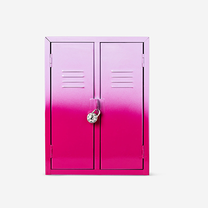 Çift Kapılı Pembe Dekoratif Kilitli Dolap, dekorasyon veya hafif eşya saklama için mükemmel bir seçenektir, mekanınıza benzersiz bir dokunuş katar. Çarpıcı degrade çok renkli kaplaması, masanıza, rafınıza veya odanıza cesur ve modern bir hava getirir. 20,1 x 27,1 x 8,1 cm boyutlarındaki bu kompakt dolap, stil ve işlevselliği bir araya getiren metalden üretilmiştir.