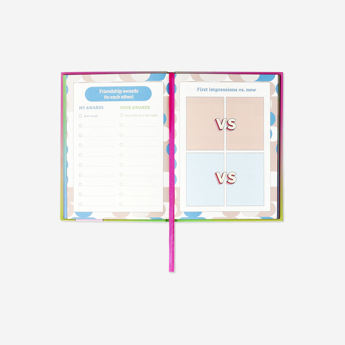 Okulda, pijama partilerinde veya boş zamanlarda birlikte vakit geçirirken kullanabileceğiniz bu günlük, bağınızı güçlendirmek ve unutulmaz anılarınızı saklamak için ideal bir araçtır. İster listeler hazırlayın, ister küçük çizimler yapın ya da en sevdiğiniz anıları yazın, Çok Renkli Arkadaşlık Günlüğü eğlenceli ve anlamlı bir hatıra kitabına dönüşür. Arkadaşlık bağlarınıza neşeli ve yaratıcı bir dokunuş katarak, yıllar sonra bile gülümseyerek bakacağınız bir koleksiyon oluşturur.