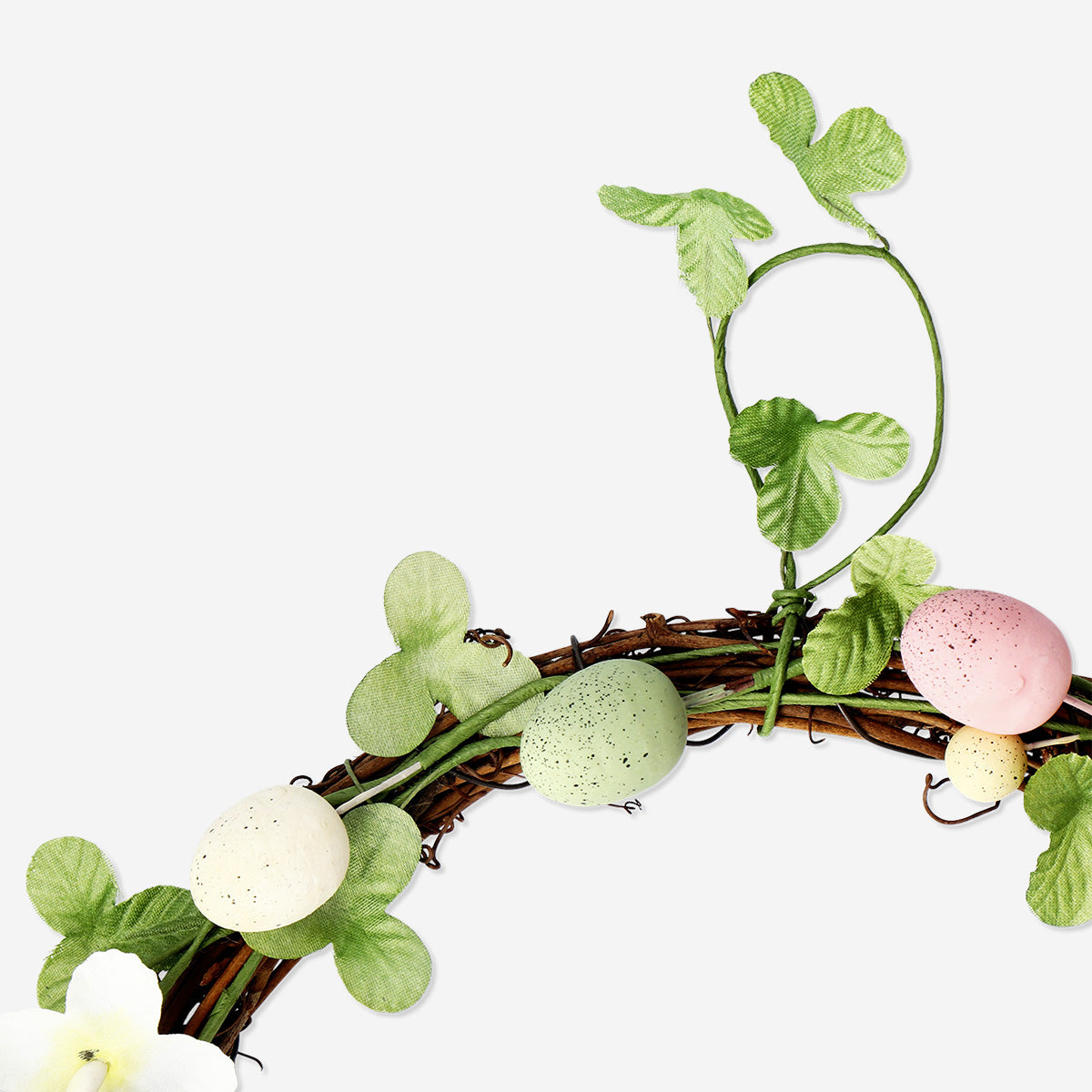 Pastel tonlarının ve narin yaprakların birleşimiyle, hem tatil toplantılarınız hem de günlük yaşamınız için zarif bir hava yaratır. Çok Renkli Yumurta Detaylı Kapı Süsü 25 cm, evinize taze ve mevsimsel bir hava katacak, Paskalya kutlamalarınızı neşelendirecek ve davetkar bir atmosfer oluşturacaktır.