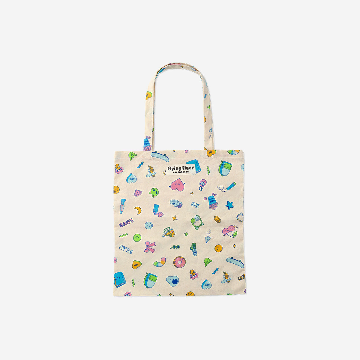Eğlenceli Desenli Bez Çanta, günlük kullanım için hem şık hem de işlevsel bir çözüm sunar. 37,5 x 41,5 x 0,2 cm boyutlarındaki bu çok renkli çanta, yumuşak pamuktan üretilmiştir ve geniş tasarımı sayesinde kitaplar, market alışverişleri veya günlük ihtiyaçlar için bolca yer sunar. Sapları rahat bir taşıma sağlar, bu da alışveriş, okul veya gündelik geziler için mükemmel bir seçenek haline getirir.