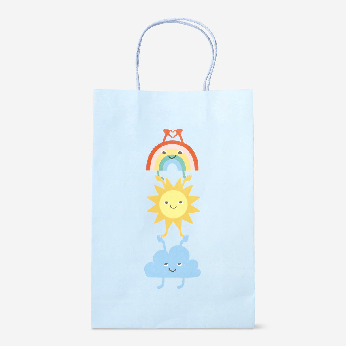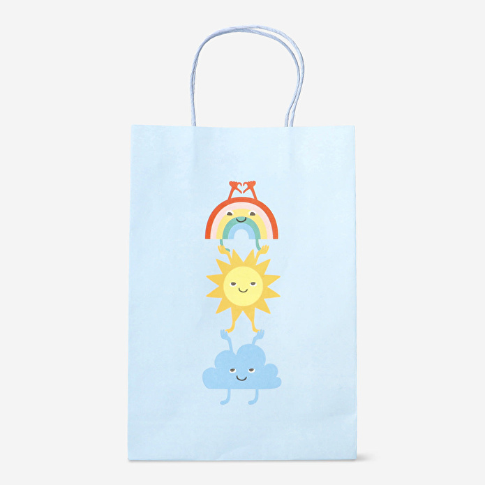 Gökkuşağı Desenli Mavi Hediye Çantası 25 cm x 33 cm, hediyelerinize neşeli ve büyülü bir dokunuş katar. 22 x 33 cm ölçülerindeki bu şık çanta, gökkuşağı ve güneşli tasarımıyla göz alıcı bir görünüme sahip olup, her türlü kutlama veya hediye sunumu için mükemmeldir. Neşeli mavi zemin ve sevimli karakterler, çantayı her yaş için uygun hale getirir ve hediyenizin sunumunu daha eğlenceli ve renkli kılar.