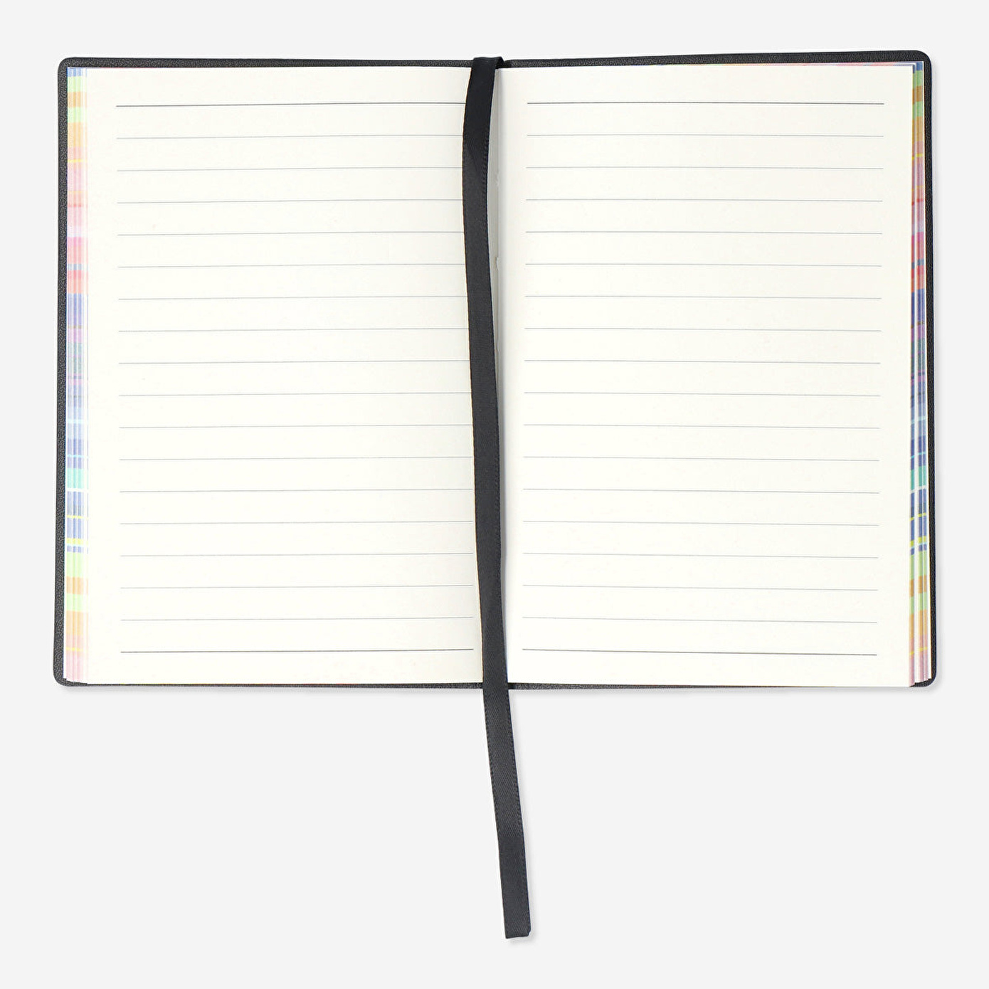 Gökkuşağı Kenarlı Defter A6 Canlı gökkuşağı kenar tasarımıyla dikkat çeker. Kapalı olduğunda, sayfaların kenarında renkli bir desen oluşur. 9,8 x 14,4 x 1 cm ölçülerinde ve 88 çizgili sayfaya sahip bu defter, hareket halindeyken not almak için idealdir. Şık siyah kapağı, hem iş hem de günlük yaşamınıza profesyonel bir dokunuş katar.