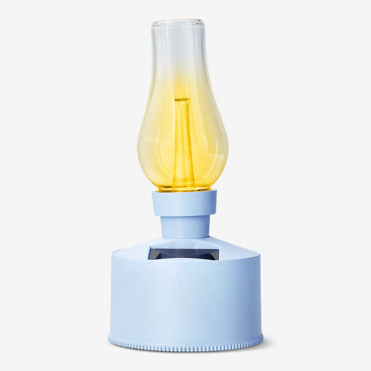 Güneş Enerjili Mavi Masa Lambası ile iç ve dış mekanlarınıza sıcak bir atmosfer katın. 5,87 x 10,4 x 5,87 cm boyutlarındaki bu kompakt lamba, hem dekoratif hem de fonksiyonel bir aksesuardır. Güneş enerjisiyle çalışarak çevre dostu bir aydınlatma çözümü sunar ve dahili 1 adet AA Ni-MH şarj edilebilir pil ile desteklenir.