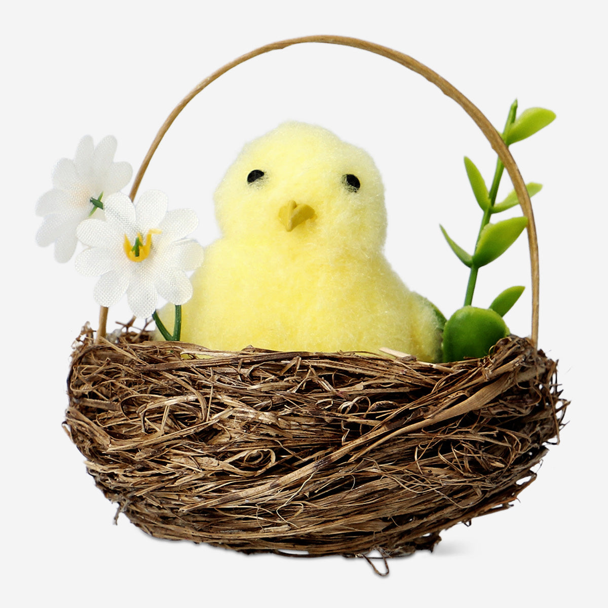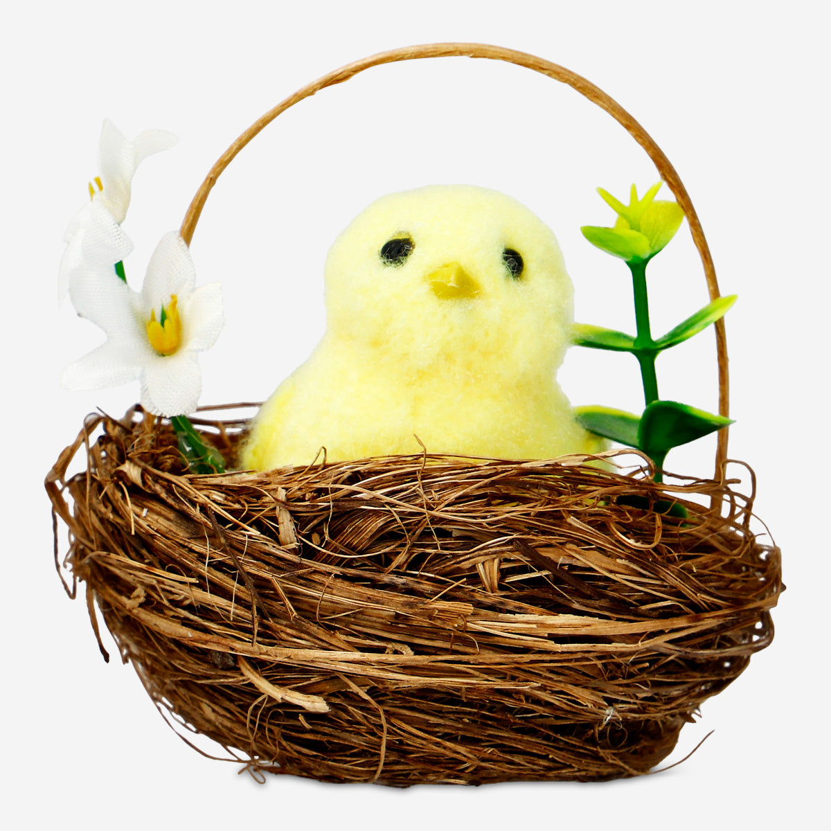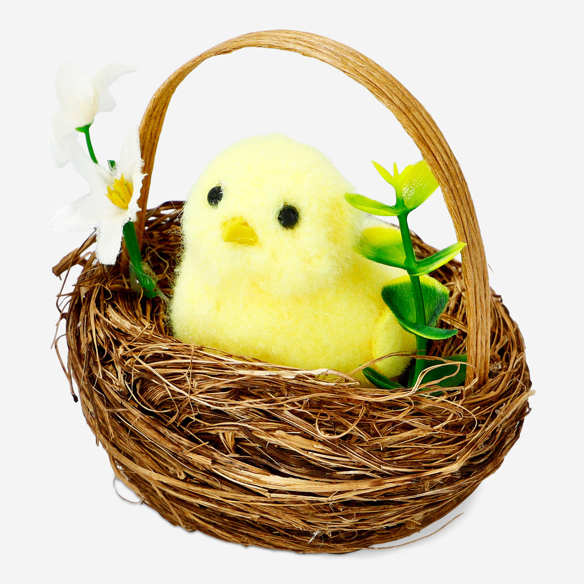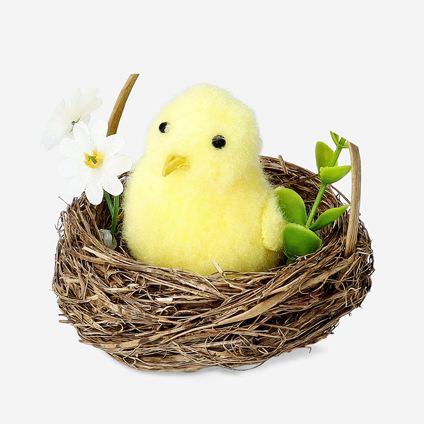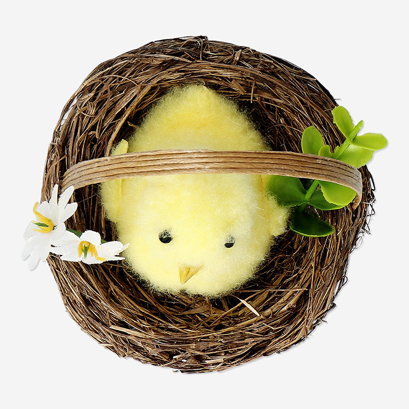 Hasır Sepette Dekoratif Küçük Sarı Civciv, Paskalya tatilinde evinize neşeli bir hava katmak için mükemmel bir seçenektir. 8,3 x 8 cm ölçülerindeki bu şirin dekorasyon, plastik malzemeden üretilmiştir ve iç mekanınıza hafif, zarif bir katkı sağlar. Canlı sarı civciv, çok renkli yuvasında otururken, Paskalya masa düzenlemeleriniz, şömineleriniz ya da raflarınız için harika bir merkez parçası oluşturur.