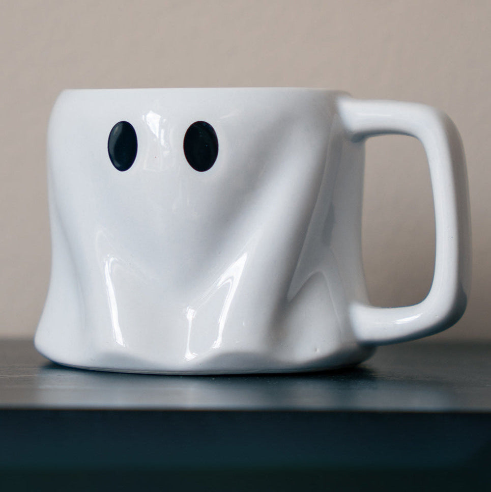 Hayalet Şeklinde Seramik Kupa 300 ml, mutfağınıza eğlenceli ve ürkütücü bir dokunuş katarak Halloween ruhunu günlük rutininize taşır. Parlak beyaz seramikten üretilmiş olan kupa, siyah göz detaylarıyla sevimli bir hayalet siluetine sahiptir ve hem temalı partilerde hem de gündelik kullanımlarda keyifli bir atmosfer yaratır. 12,7 x 8 cm boyutları ve 300 ml kapasitesi sayesinde sabah kahvenizden akşam sıcak çikolatanıza kadar birçok içecek için uygundur.