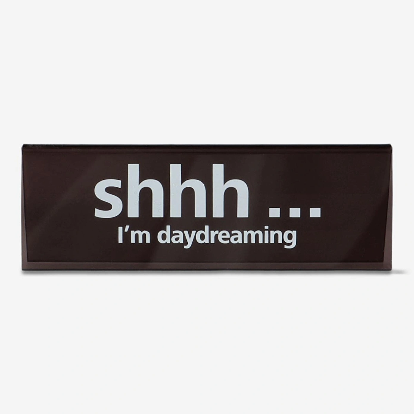"I am Daydreaming" Yazılı Siyah Masaüstü Tabela, çalışma alanınıza eğlenceli ve şık bir dokunuş ekler. Siyah renkli tasarımı, minimalizmi ve zarifliği yansıtırken, üzerindeki neşeli yazı, günlük işlerinize renk katacak ve etrafınızdakilere eğlenceli bir mesaj iletecektir. Bu tabela, çalışma sırasında hayal kurmayı sevenlere veya kısa bir mola vermek isteyenlere yönelik tatlı bir hatırlatıcıdır.