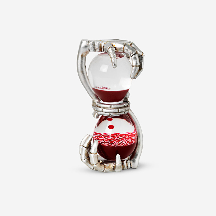 Aşınmış metalik kaplama ve ince kemik detayları, gotik ve antika bir his uyandırarak dekorunuza mistik bir hava katar. Şömine rafları, masa üstleri veya temalı dekor köşelerinde sergilendiğinde, hem sanatsal hem de ürkütücü bir vurgu oluşturur. İster zaman ölçmek için ister yalnızca dekoratif bir obje olarak kullanın, İskelet Detaylı Gotik Kum Saati, korku temalı kutlamalarınıza eşsiz bir karakter kazandırır.
