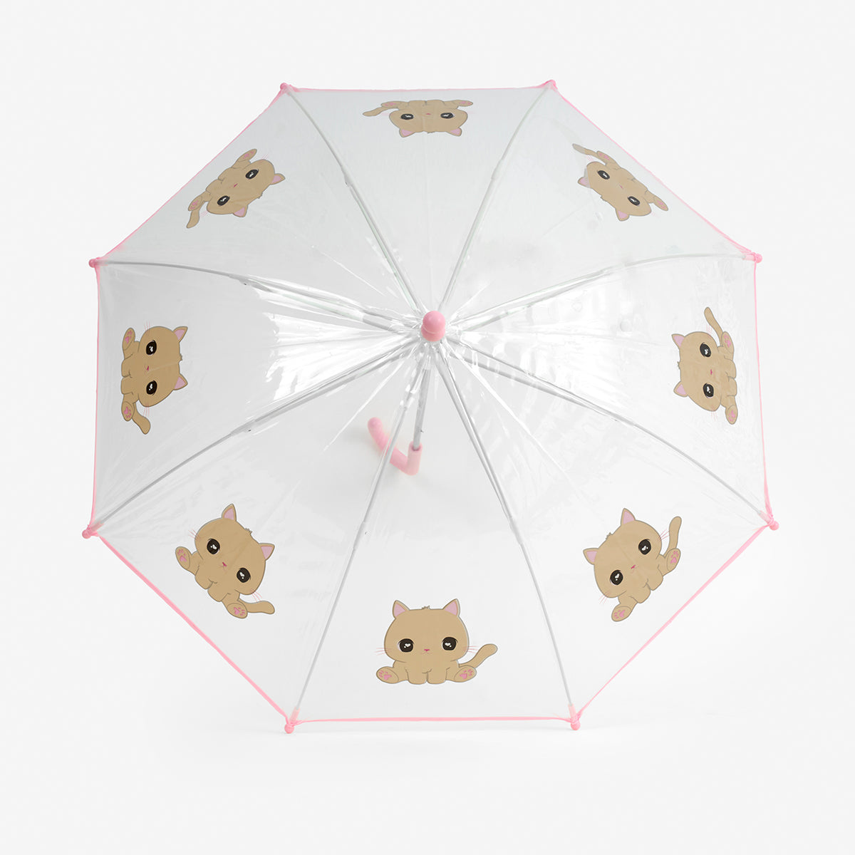 Kedi Desenli Şeffaf Çocuk Şemsiyesi, çocukların yağmurlu günleri sevimli ve eğlenceli bir hale getirir! Şeffaf tasarımı, dışarıdaki dünyayı net bir şekilde görmelerini sağlarken, kedi desenleri şemsiyeye tatlı bir dokunuş katar. Hafif ve dayanıklı yapısı, çocukların kolayca taşıyabileceği şekilde tasarlanır.