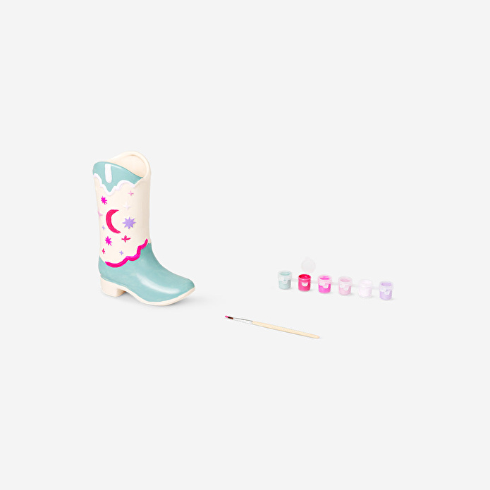Kendin Boya Seramik Çizme ile yaratıcı bir şekilde batı esintili bir dekorasyon parçası oluşturun. Bu set, 6x3 ml boya ile birlikte gelir ve kendi renk kombinasyonlarınızı kullanarak benzersiz bir tasarım yapmanıza olanak tanır. 13,2 x 18 x 5,8 cm boyutlarındaki bu seramik çizme, evinize eğlenceli bir dokunuş katmak için mükemmel bir aksesuardır.