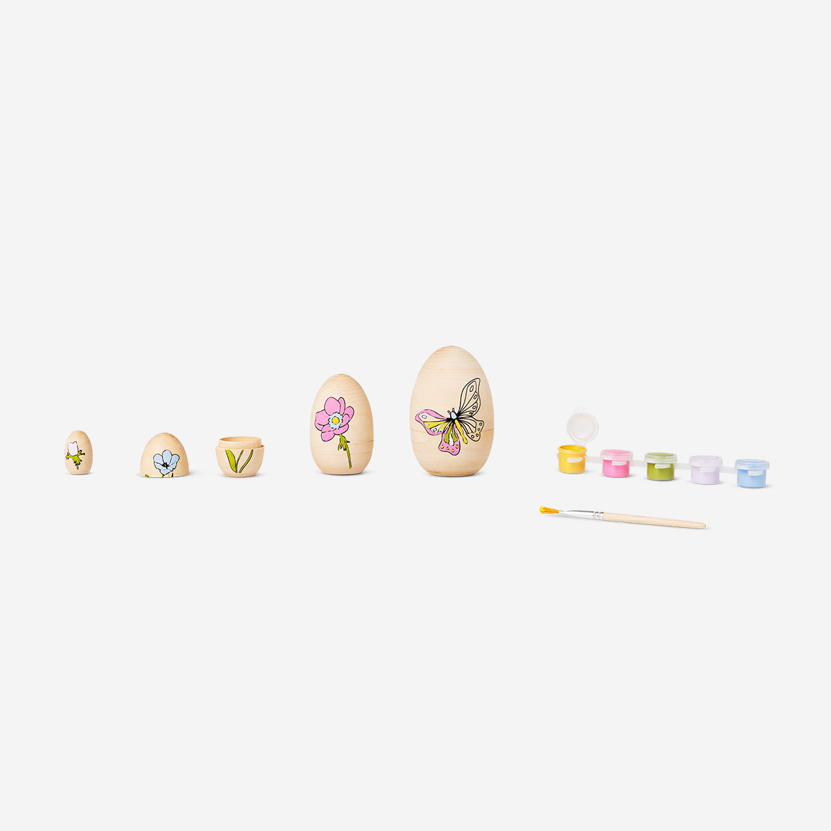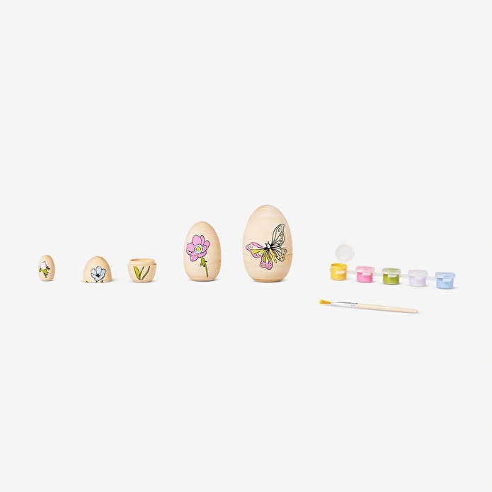 Kendin Yap Ahşap 4'lü Yumurta Seti, Paskalya tatilinize yaratıcı bir dokunuş katmak için mükemmel bir el işi kitidir. Bu set, bahar esintili çiçek ve kelebek desenleriyle işlenmiş, boyamanız ve kişiselleştirmeniz için hazır dört ahşap yumurta içerir. En büyük yumurta 5,4 x 8,4 cm ölçülerindedir ve üst üste dizildiğinde Babushka tarzı hoş bir görüntü oluşturan farklı boyutlarda yumurtalar yer alır.