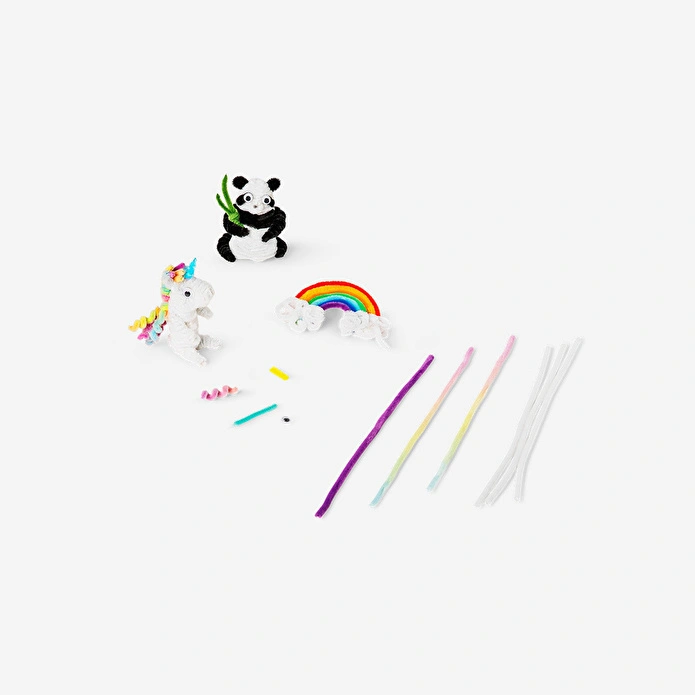 Kendin Yap Hayvan Figürü Kiti, hayal gücünüzü serbest bırakmanızı sağlayacak mükemmel bir el işi setidir. Set, 0,6 x 30 cm boyutlarında metal boru temizleyiciler içerir ve bu malzemelerle tek boynuzlu atlar, pandalar, gökkuşakları ve çok daha fazlasını yaratabilirsiniz. Renkli malzemelerle dolu bu kit, bükme ve şekillendirme becerilerinizi geliştirmenize yardımcı olur ve aynı zamanda yaratıcılığınızı keşfetmenize olanak tanır.