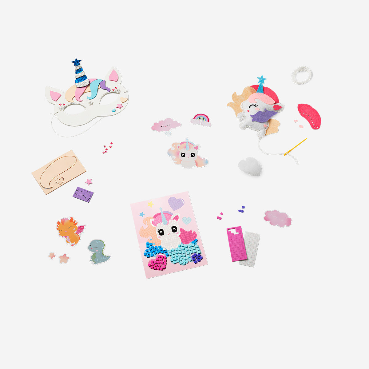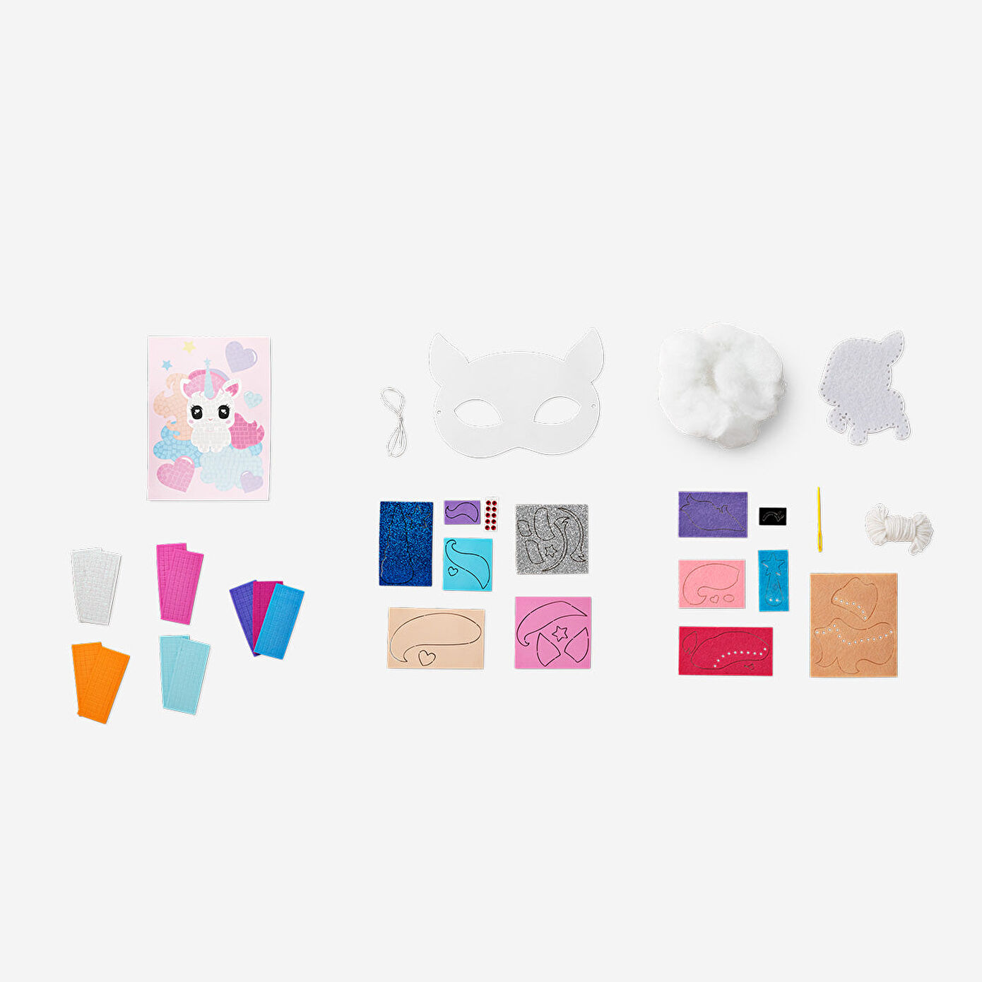 Kendin Yap Unicorn Tasarlama Seti, hayal gücünüzü serbest bırakmanızı sağlayacak eğlenceli ve yaratıcı bir el işi deneyimi sunar. Set, sihirli tek boynuzlu at temalı şablonlar, çıkartmalar, renkli iplikler, parlak köpük ve süslemeler için tüm malzemeleri içerir. 18,8 x 13,5 cm boyutlarındaki eğlenceli maske, tasarladığınız tek boynuzlu at karakterlerine şekil verirken size özgünlük ve yaratıcılık sunar. Yumuşak figürler ve çeşitli aksesuarlar ile maskeyi süsleyerek kendi fantastik dünyanızı yaratabilirsiniz.