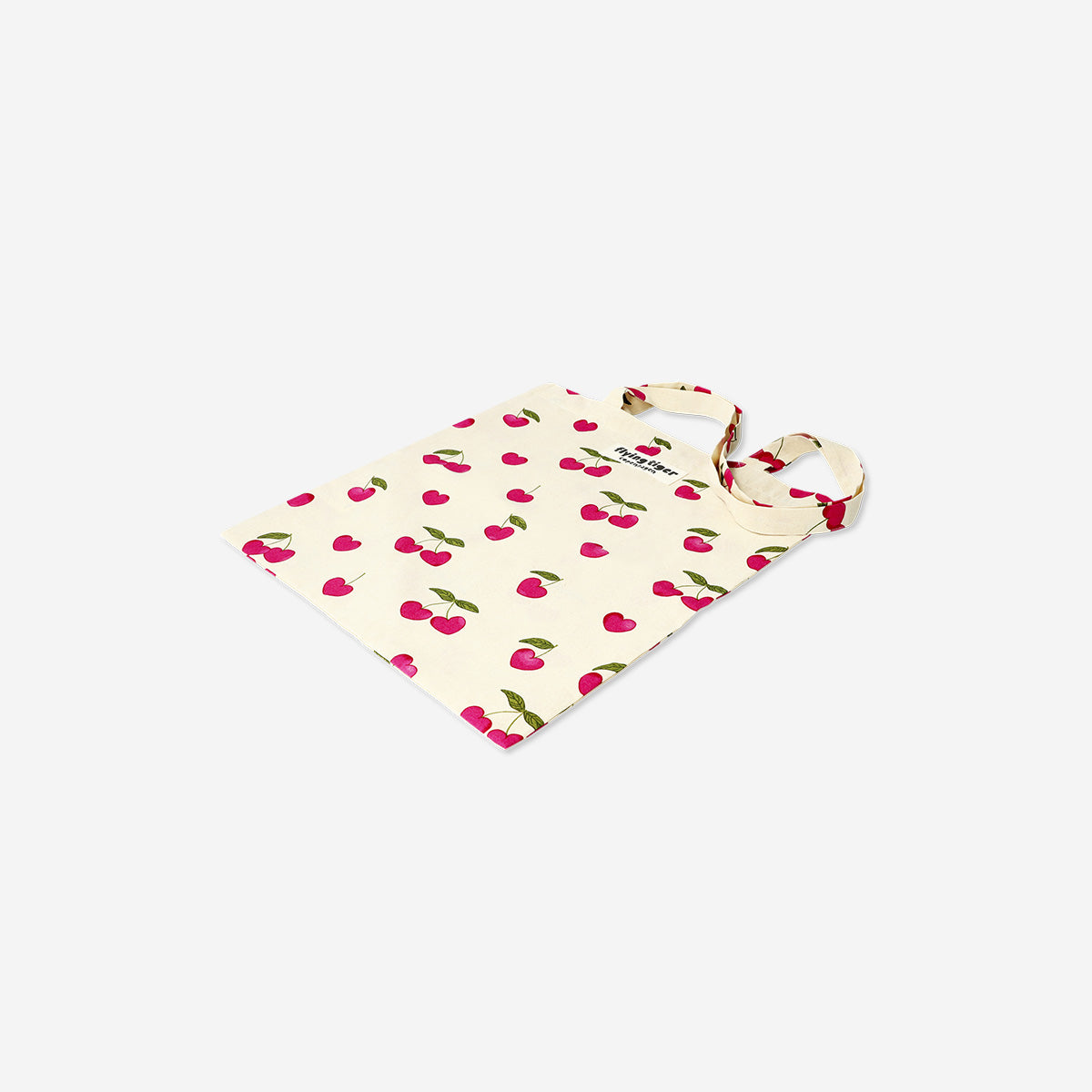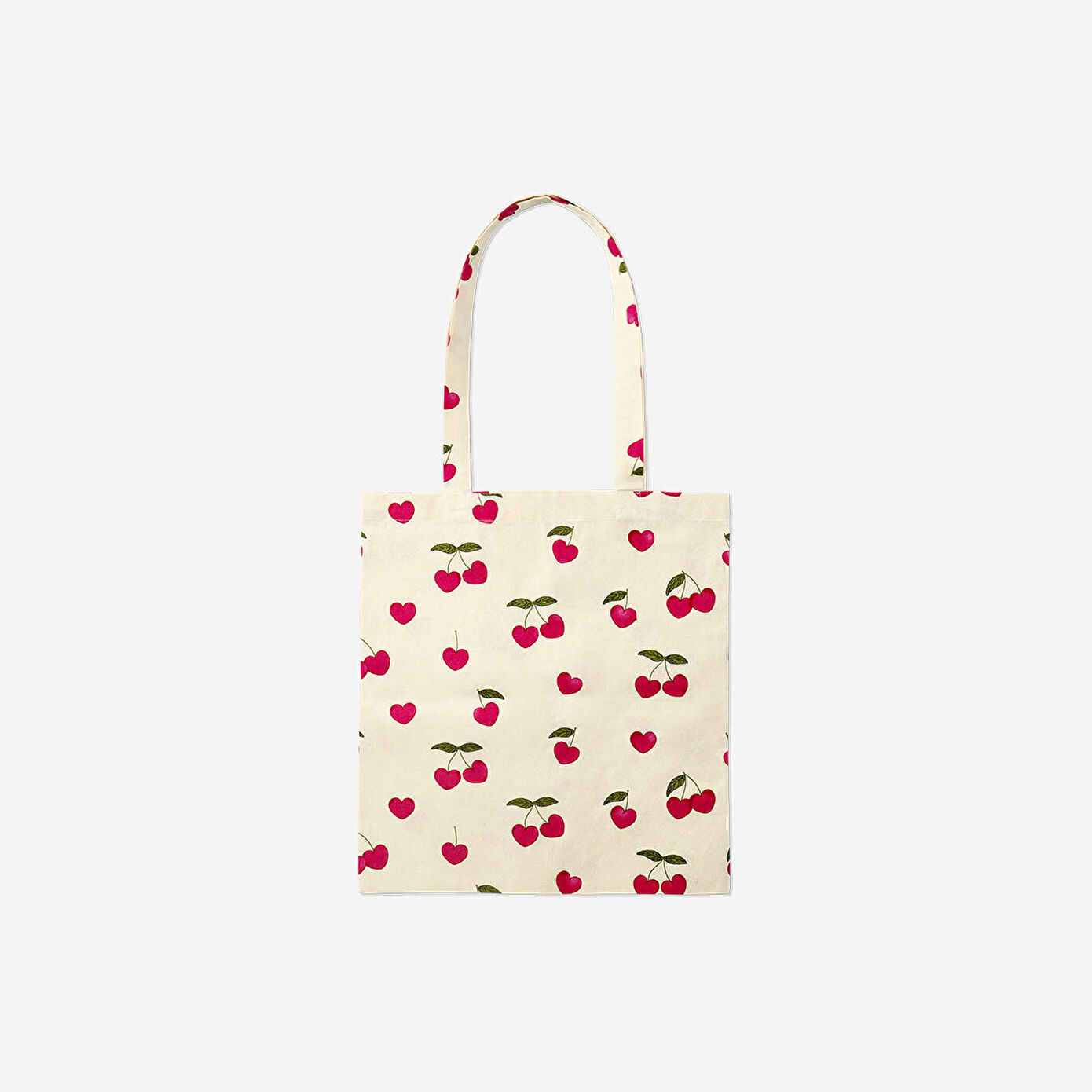 Kiraz Desenli Bej Bez Çanta ile gününüze renk katın. Pamuktan üretilen bu hafif çanta, 37,5 x 41,5 cm boyutlarında olup günlük ihtiyaçlarınızı taşımak için geniş bir alan sunar. Eğlenceli ve şık tasarımı, alışveriş, plaj gezileri veya gündelik geziler için mükemmel bir arkadaş olur.