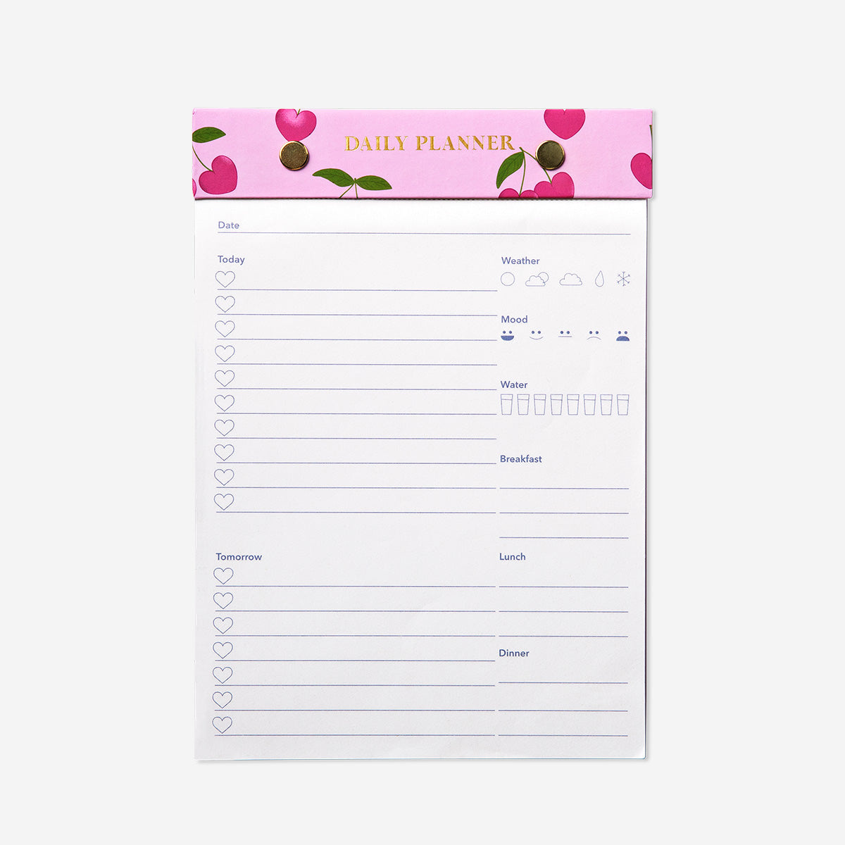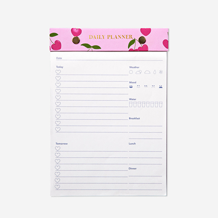 Kiraz temalı tasarımı, masanıza eğlenceli bir kişilik ekler, böylece planlama sürecini daha keyifli hale getirir. Hava durumu, ruh hali, su alımı ve öğünler için özel bölümlerle donatılan Kiraz Desenli Pembe Günlük Planlayıcı Not Defteri, gün boyunca odaklanmanıza ve dikkatli olmanıza yardımcı olur. Hem evde hem de ofiste kullanılabilir, pratik ve şık bir organizasyon aracı olarak, tüm gününüzü düzenli tutmanızı sağlar.