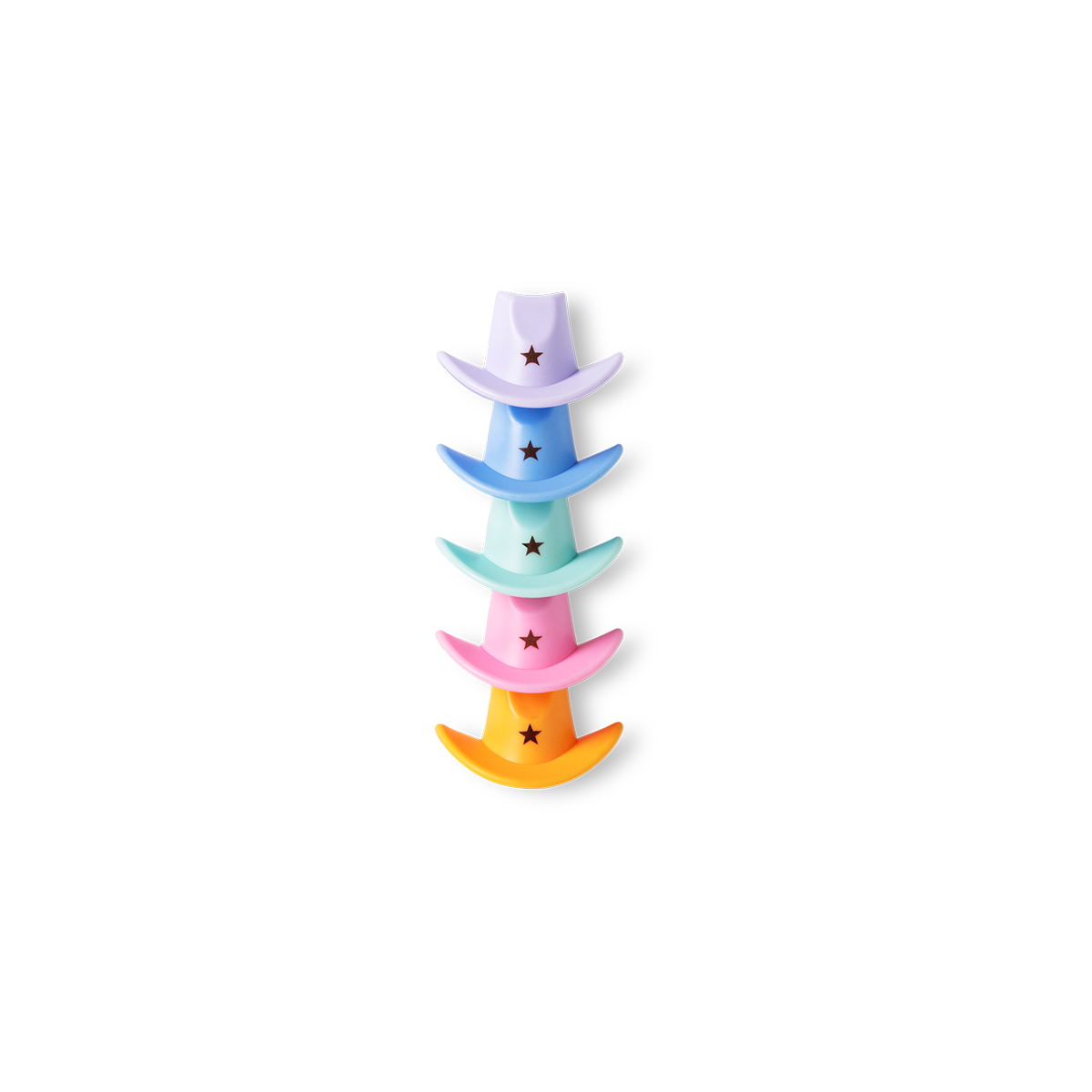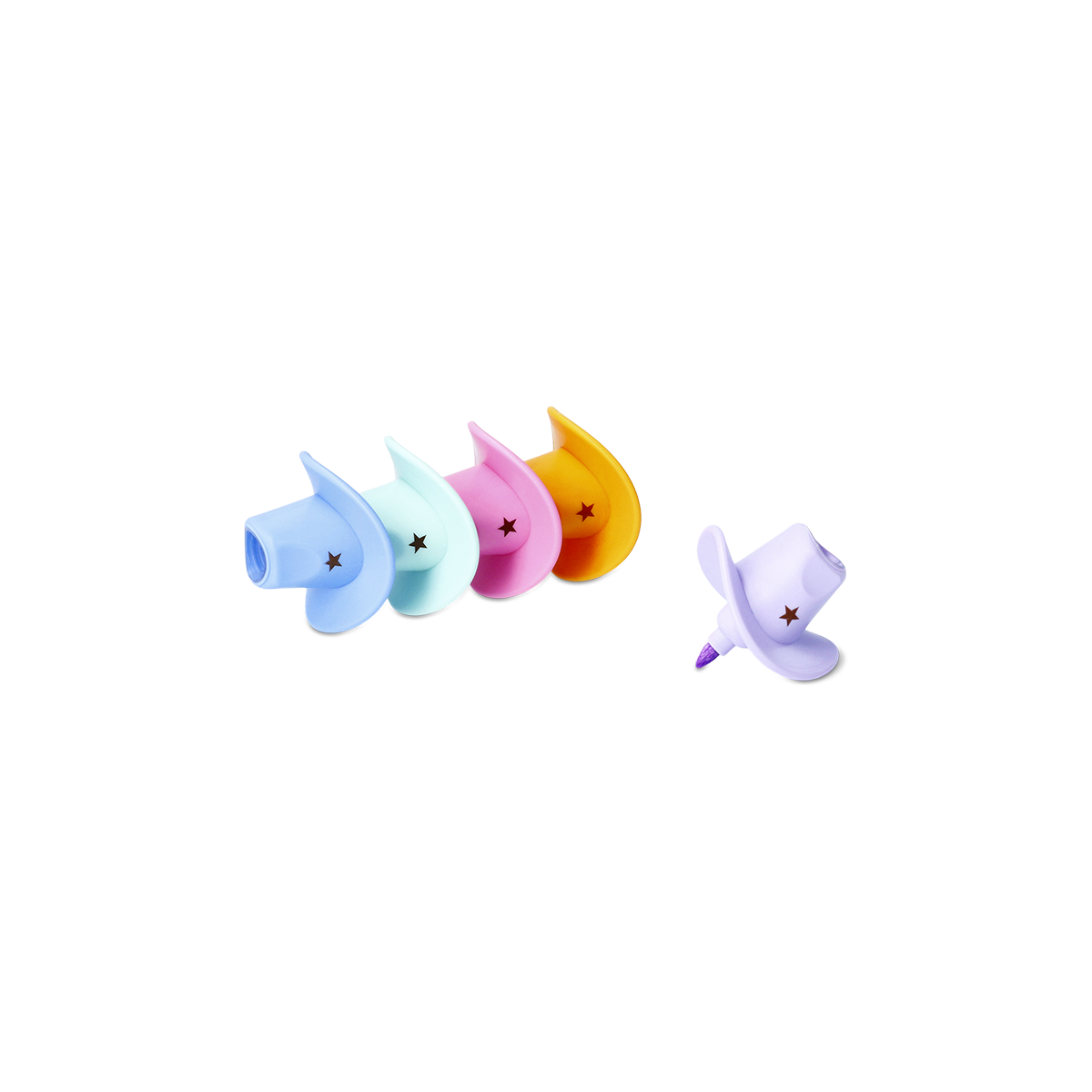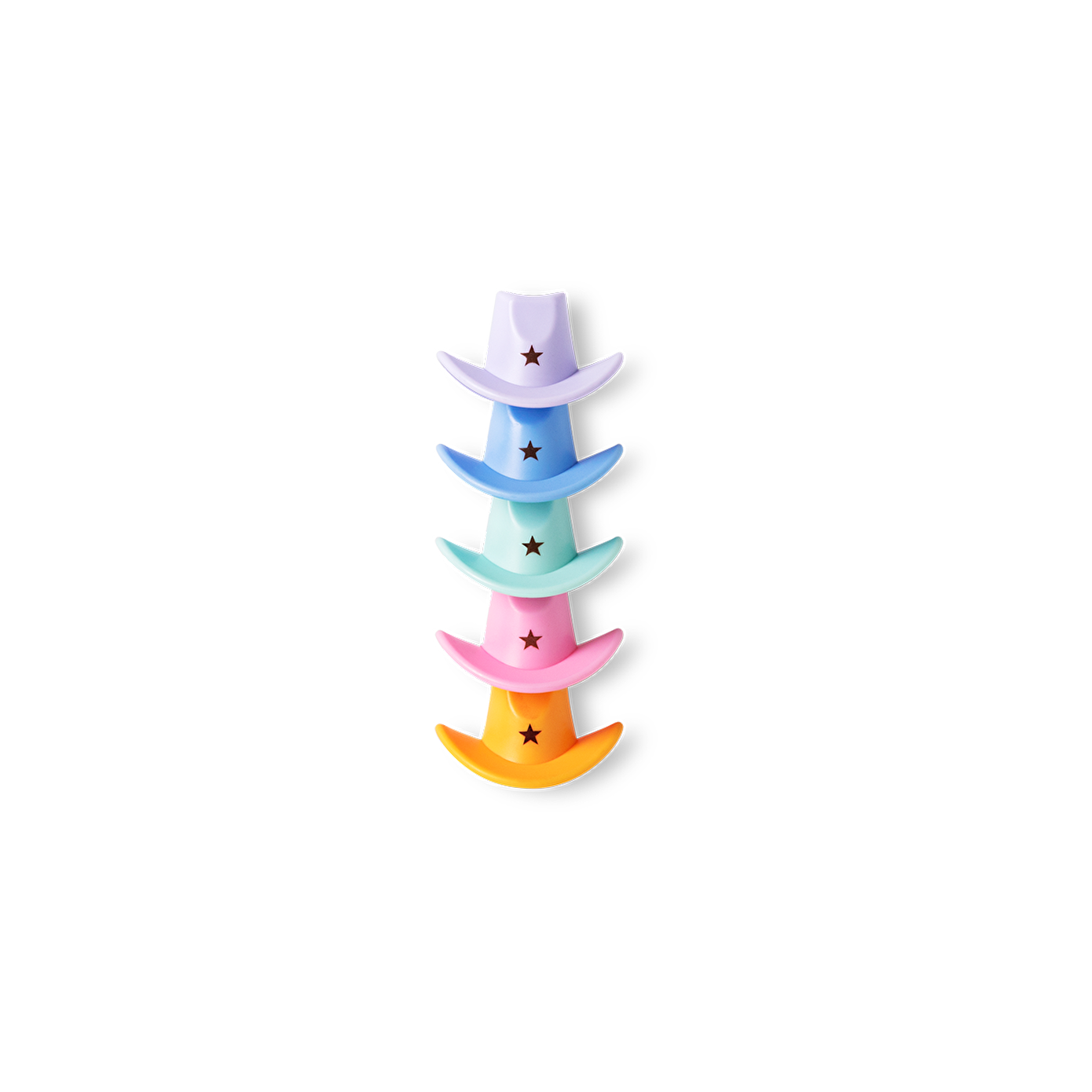 Kovboy Şapkalı Fosforlu Kalem Seti ile çalışma alanınıza eğlenceli bir batı havası katın. Bu beşli set, kovboy şapkaları şeklindeki fosforlu kalemlerle vurgulama işlemini hem renkli hem de şık hale getirir. 4,5 x 12 cm boyutlarındaki kalemler, istiflenebilir tasarımı sayesinde kolayca saklanabilir ve taşıması oldukça pratiktir. Canlı renkleriyle notlarınızı vurgulamak veya ajanda sayfalarınızı işaretlemek için mükemmel olan bu set, okul, ofis veya yaratıcı projeler için idealdir.
